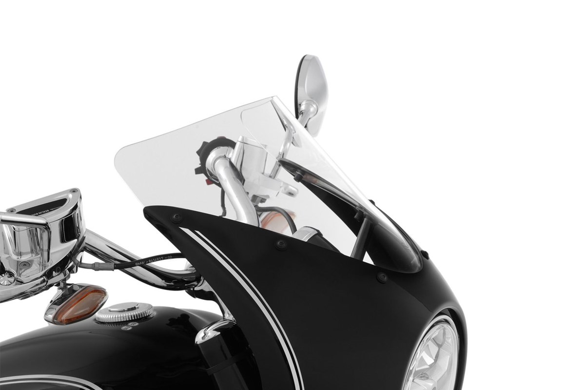Mit unserer Verkleidungsscheibe TOURING - in Kombination mit unserer Lampenmaske Rock ’n‘ Roll - lässt sich die Touren- und Langstreckentauglichkeit der R 18 spürbar verbessern, ohne dass die stilsichere Linie des Cruisers leidet, ganz im Gegenteil. Die dem Fahrer zugeneigte, raffiniert geschnittene, aerodynamische Form der kompakten Scheibe lenkt die Strömung des Fahrtwinds nach oben und schafft auf diese Weise die gewünschte Entlastung des Fahrers vom Winddruck. Dies gilt bereits ab mittleren Geschwindigkeiten. Die integrierte Scheibe sorgt zusammen mit unserer Lampenmaske für eine insgesamt optimierte laminare Anströmung der R 18.