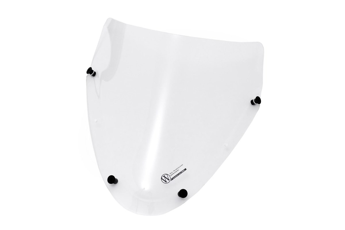 Fünf Millimeter Scheibenstärke stehen für mechanische und aerodynamische Stabilität auch bei höchsten Geschwindigkeiten. Unsere typische, hochwertige Verarbeitung des kratz- und bruchfesten PMMA-Werkstoffs erkennt man beim Durchsehen: Klarer Durchblick, ohne verzerrende optische Fehler, die irritieren. Weiteres Markenzeichen: Die handpolierten, gerundeten Kanten, die einen separaten Kantenschutz überflüssig machen.