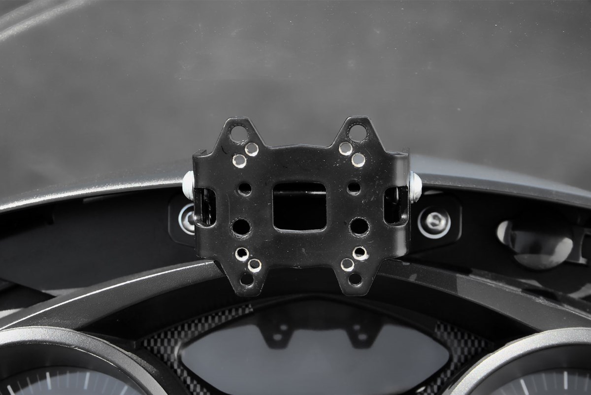 Jetzt rückt das Navi endlich in einen sichtbaren Bereich. Ohne den Blick gefährlich lange von der Fahrbahn abwenden zu müssen, ist in komplizierten Verkehrssituationen nun immer ein Kontroll-Blick möglich. Bei konventioneller Befestigung an der Lenkerbrücke stört zudem oft der Tankrucksack und der Zündschlosszugang ist erschwert.