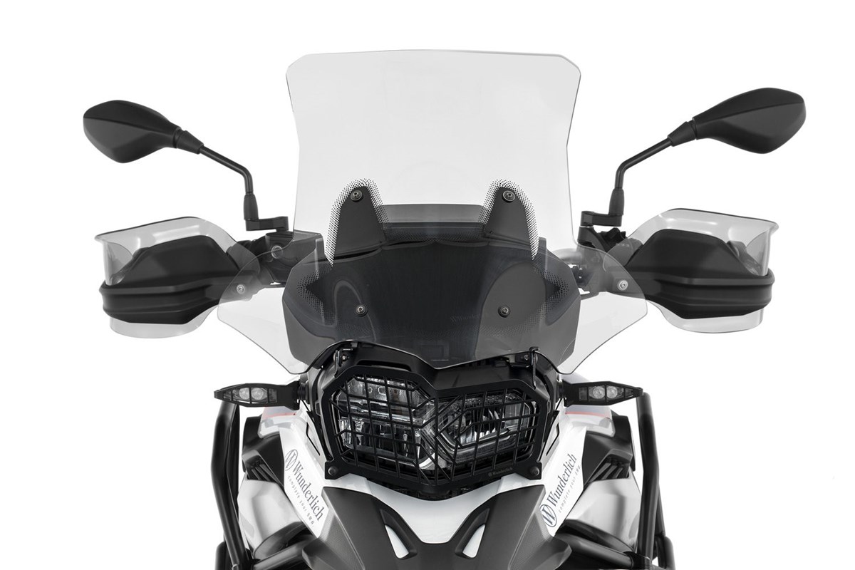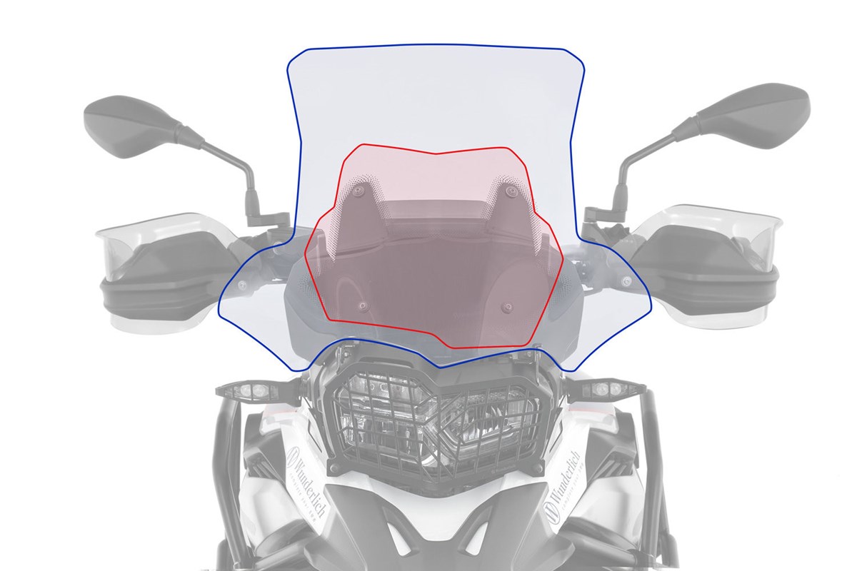 Hinweis: Diese Verkleidungsscheibe ist ausschließlich für Modelle mit der langen Scheiben-Halterung geeignet. Die lange Scheibenhalterung ist die Standard-Scheibenhalterung bei der F 850 GS mit 160 mm Abstand der Schraubenlöcher. Verfügt Ihre F über eine kurze Scheibenhalterung mit 115 mm Schraubenabstand (kann beim Fahrzeugkauf der F 850 GS optional bestellt werden), ordern Sie bitte die Verkleidungsscheibe 20230-204.