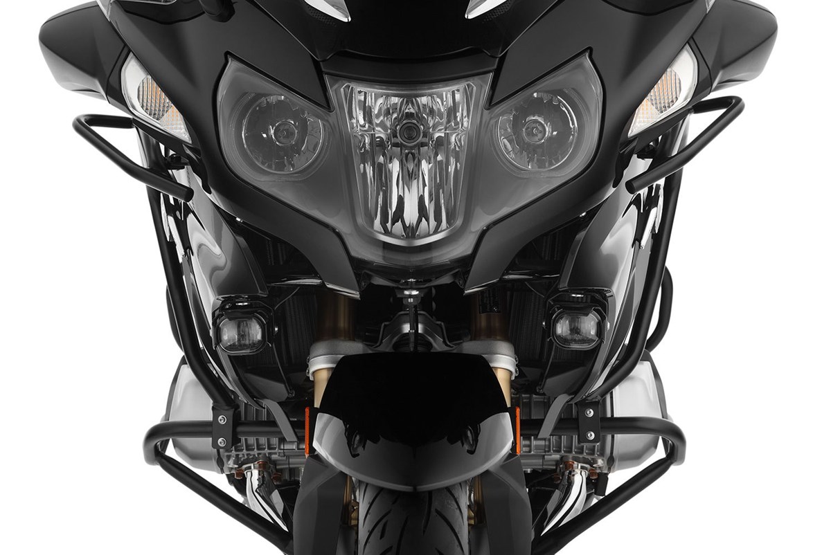 Der Motorschutzbügel schützt nicht nur zuverlässig die Zylinder und Ventildeckel, sondern auch die beiden Lambdasonden. Der Verkleidungs- und Tankschutzbügel übernimmt den Schutz des Tanks und die Verkleidung des Vorbaus sowie den der Wasserkühler-Einheiten.