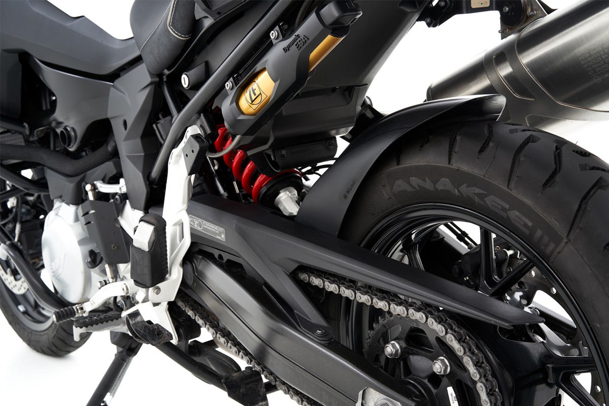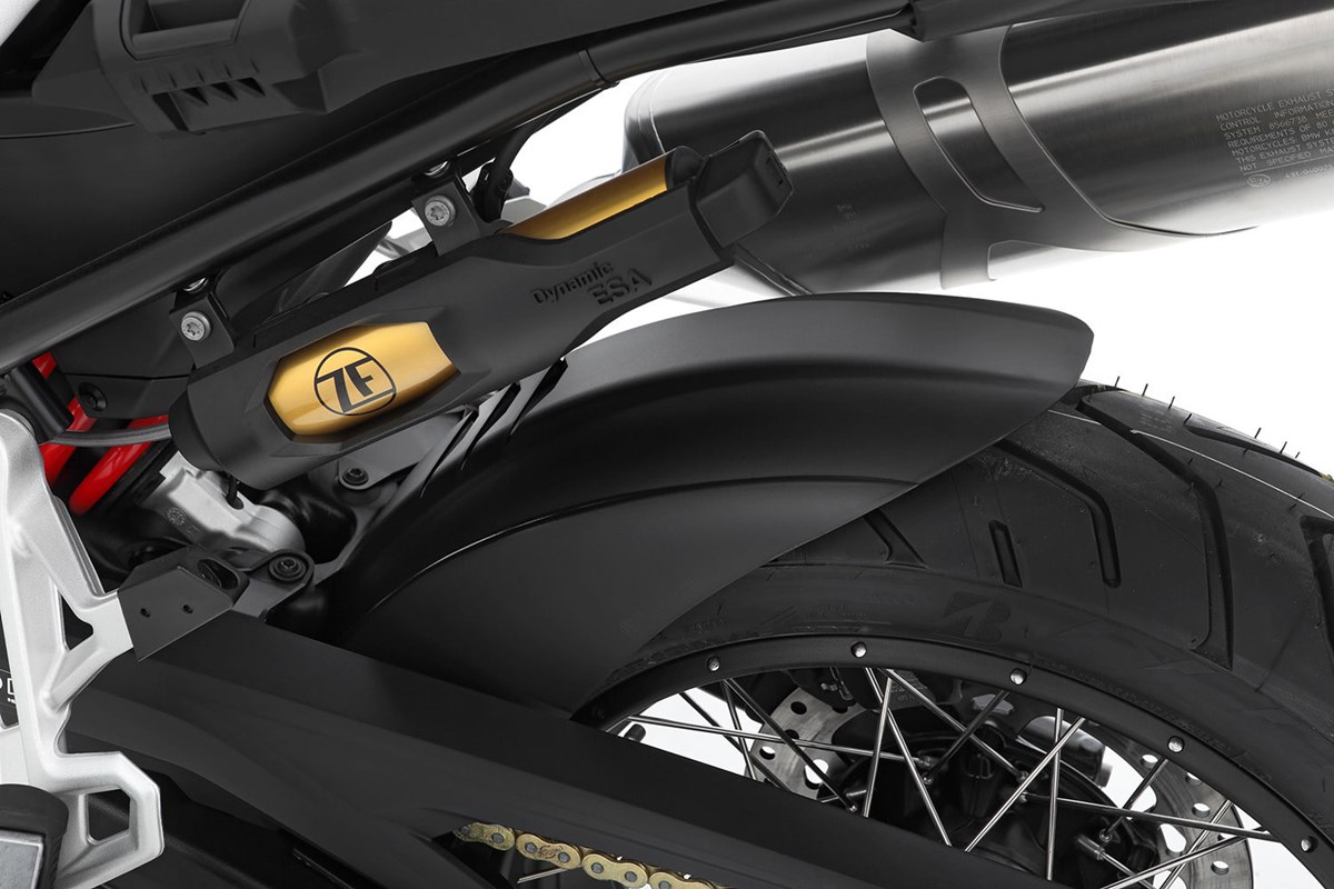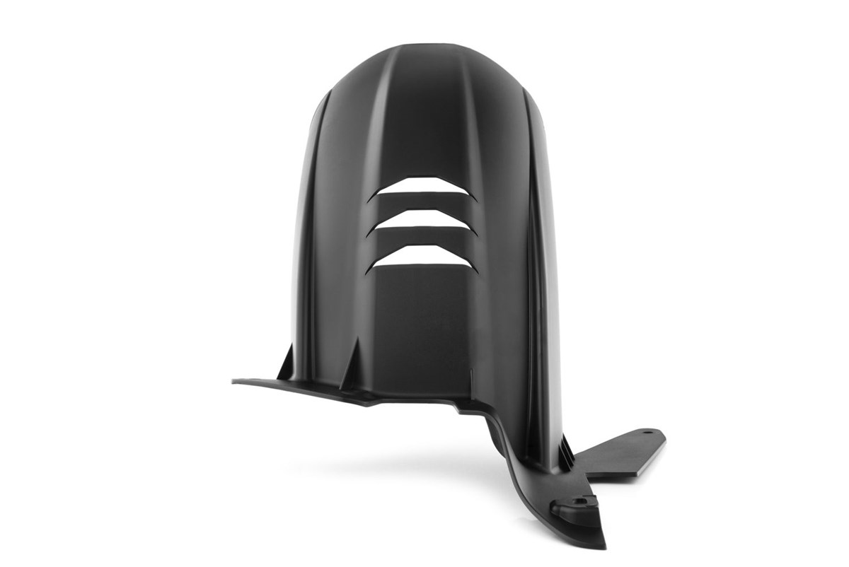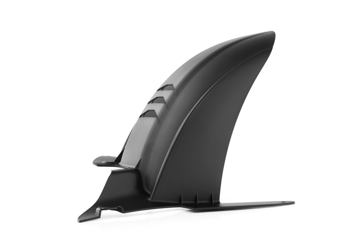 Sie bietet zugleich einen verlässlichen Schutz für die Technikkomponenten: Federbein, Auspuffanlage, Sammler Auspuffklappen-mechanismus und der Unterbau des Rahmenhecks werden gegen Steinschlag, Straßenschmutz und bei Regenfahrten gegen Nässe geschützt.