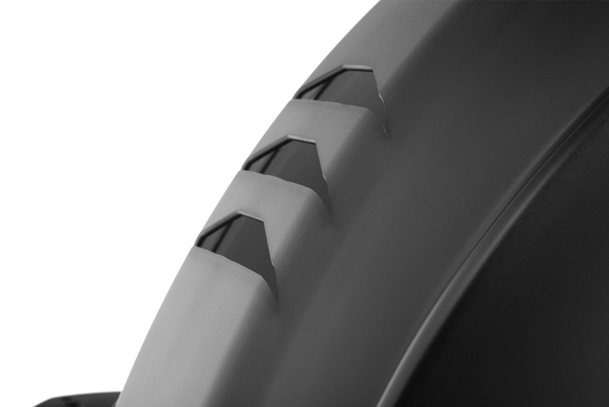 Die Hinterradabdeckung ist seitlich verstärkt, um Vibrationen zu dämpfen.