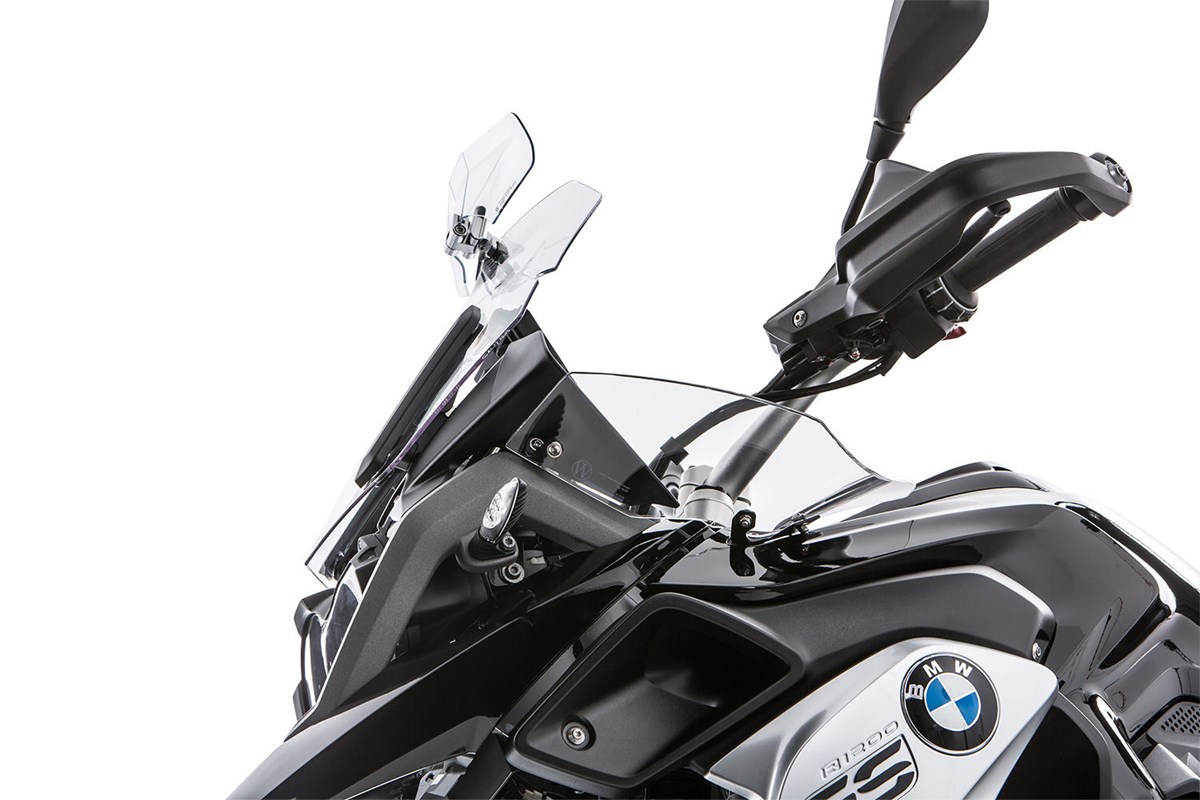 Deshalb haben wir diese Windabweiser für die R 1200 GS LC entworfen. Sie sind das Pendant für die an der Adventure bereits serienmäßig vorhandenen Windabweiser. Diese Windabweiser schützen den GS-Fahrer effektiv vor Fahrtwind und Witterungseinflüssen, die seitlich am Cockpit vorbei strömen und verhindern zuverlässig Verwirbelungen in diesem Bereich. Die an dieser Stelle an einer ungeschützten GS entstehenden Probleme können sich sogar noch auf die von uns entwickelten sehr guten Tourenscheiben negativ auswirken.