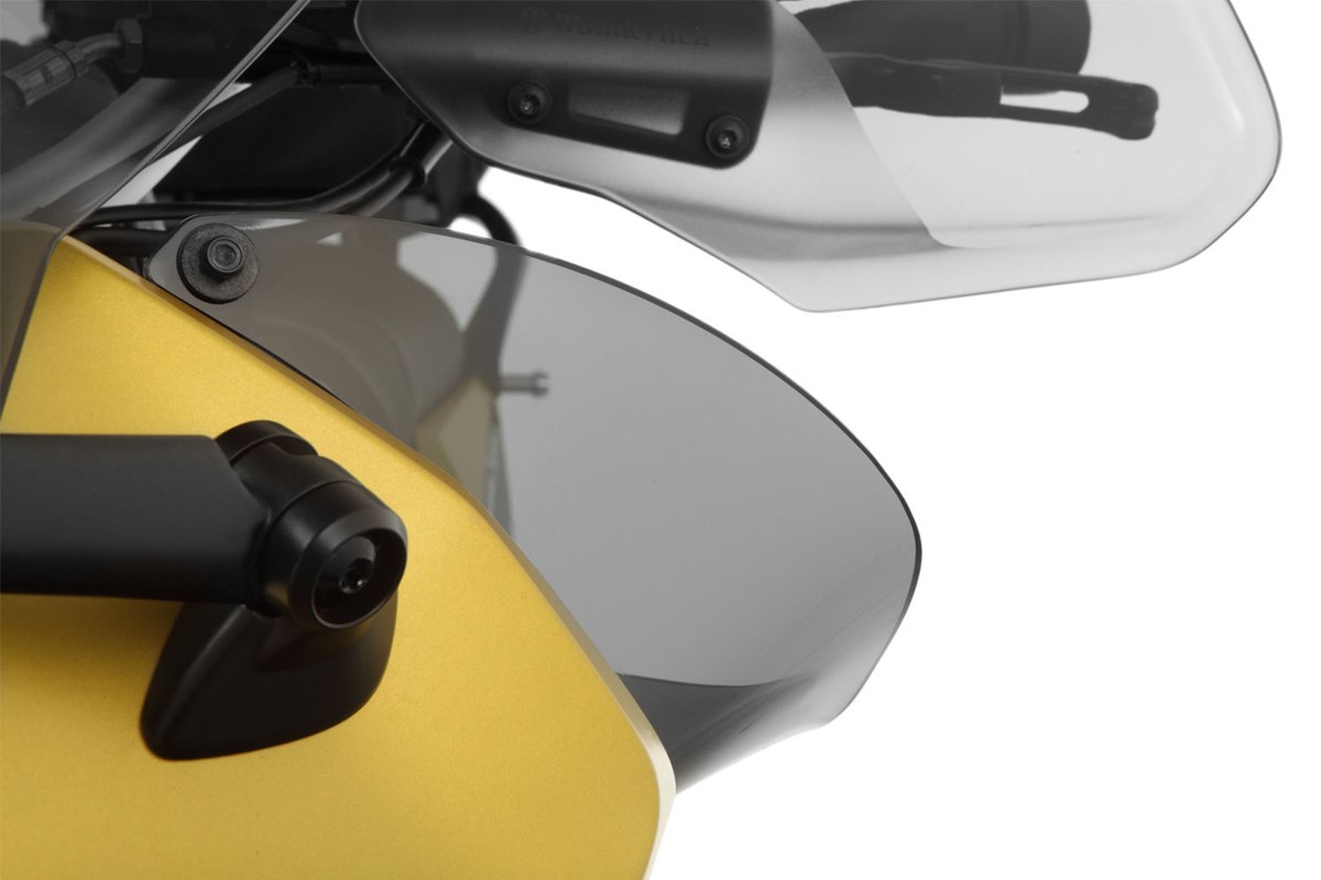 Deshalb haben wir diese Flaps für entworfen. Die Funktionsweise ist ähnlich den an der R 1200 GS Adventure bereits serienmäßig vorhandenen Windabweisern. Die Flaps schützen den RS-Fahrer effektiv vor Fahrtwind und Witterungseinflüssen, die seitlich am Cockpit vorbei strömen und verhindern zuverlässig Verwirbelungen in diesem Bereich. Die an dieser Stelle an einer ungeschützten RS entstehenden Probleme können sich sogar noch auf die von uns entwickelte sehr gute Tourenscheiben negativ auswirken.