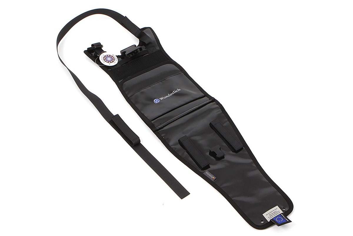 Zum Betanken mit einem Handgriff abklappbar. Die Systemhalterung ist schnell abnehmbar, kann aber auch am Fahrzeug verbleiben und schützt so den Lack. Zudem ist die Halterung auch zur Aufnahme des separat erhältlichen Kartenfachs ohne Verwendung des Tankrucksacks geeignet.
