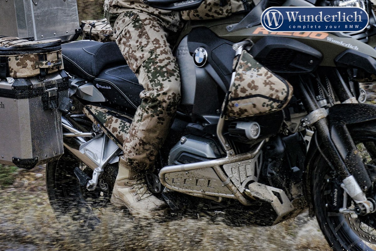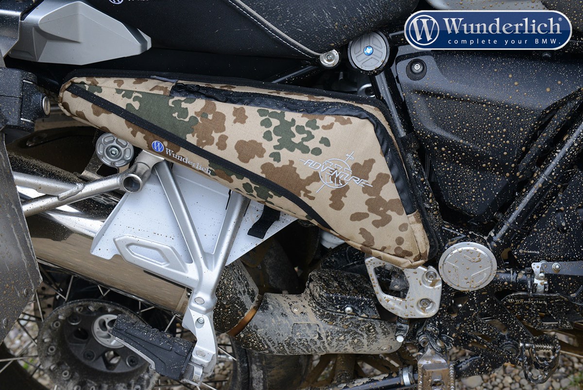 Die zwei praktischen Taschen aus perfekt verarbeitetem Cordura 1000 bieten zusätzlichen Raum für alles was griffbereit sein soll, wie z.B. Werk- oder Verbandszeug. Sie schließen gleichzeitig die Öffnung im Rahmenheck rechts und links und vervollständigen das Erscheinungsbild Ihres Motorrads, so dass sie nun wie aus einem Guss erscheint. Dabei sorgt sie ganz nebenbei für den Schutz von Fahrer und Beifahrer vor Spritzwasser. Fürs neutrale Fahrverhalten besonders günstig ist die Anbringung nahe am Schwerpunkt. Erst recht im Offroad-Einsatz. Ohne jegliche Beeinträchtigung der Bewegungsfreiheit von Fahrer und Sozia.