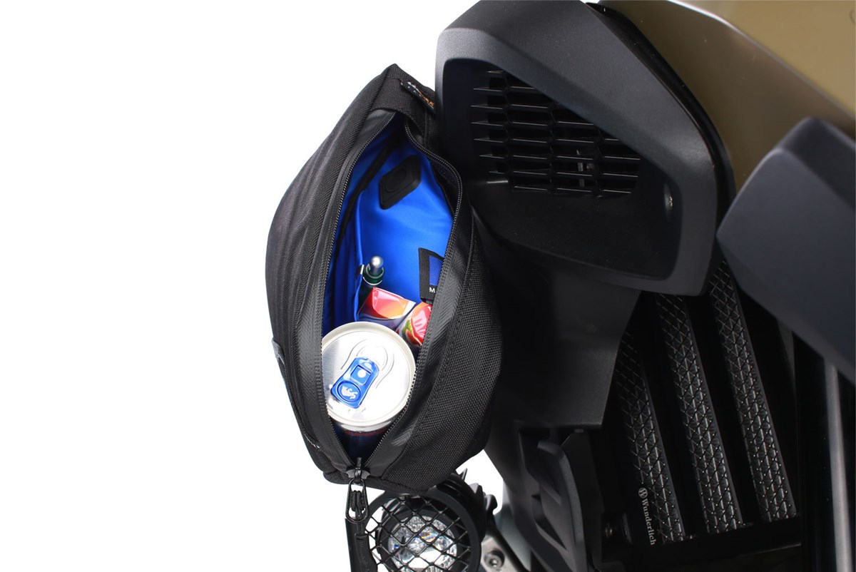 • Zusatz-Gepäckraum an den Tankschutzbügeln für die Dinge, die im Tankrucksack keinen Platz mehr finden, aber trotzdem in Reichweite bleiben sollen.