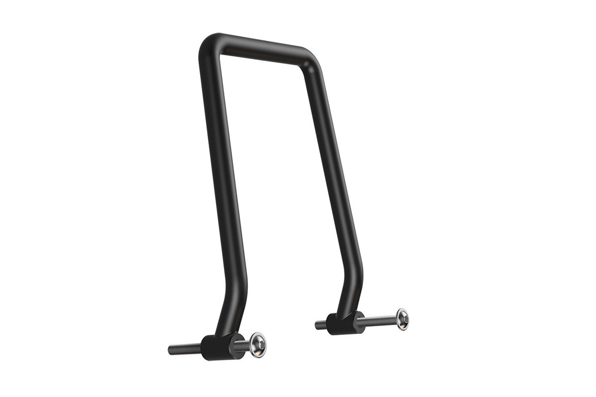 Die Befestigung erfolgt ganz einfach über den Frontträger. Der Gerätehalter besteht aus schwarz pulverbeschichtetem, hochwertigem Stahl.