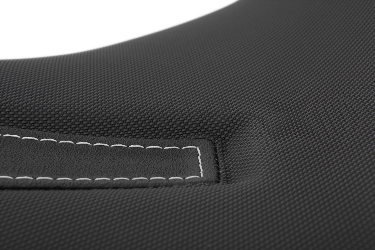 Wir fertigen unsere Sitze mit einer charakteristischen, ergonomischen 3-D-Kontur, die Fahrer und Beifahrer mit seinem BMW-Motorrad eins werden lässt. Form und Neigung des aufwändig verarbeiteten, progressiv aufgebauten, zweischichtigen Sitzbankkerns unterstützen die ergonomische vorteilhafte, natürliche Haltung des Beckens. So integriert, fährt es sich einfach entspannt und damit aktiv. Und, kein Zweifel, entspanntes Sitzen schafft ein Plus an passiver Sicherheit. Der integrierte Windkanal auf der Sitzfläche sorgt für eine angenehme Belüftung beim Fahren. Ein griffiges Bezugsmaterial erhöht ebenfalls den Komfort. Mit der ThermoPro Beschichtung liegt die Temperatur dieser Sitzbank im Hochsommer in praller Sonne um bis zu 25°C niedriger im Vergleich mit herkömmlichem, unbehandeltem Bezugsmaterial.