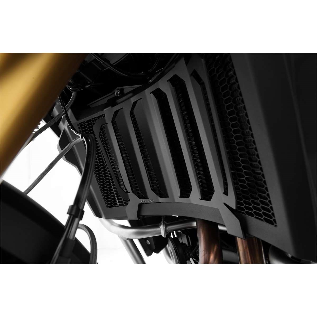 Auch optisch ist unser Wasserkühlerschutz ein Highlight: Das funktionale Design integriert sich ins Layout der F 850 GS Adventure und wertet es auf.