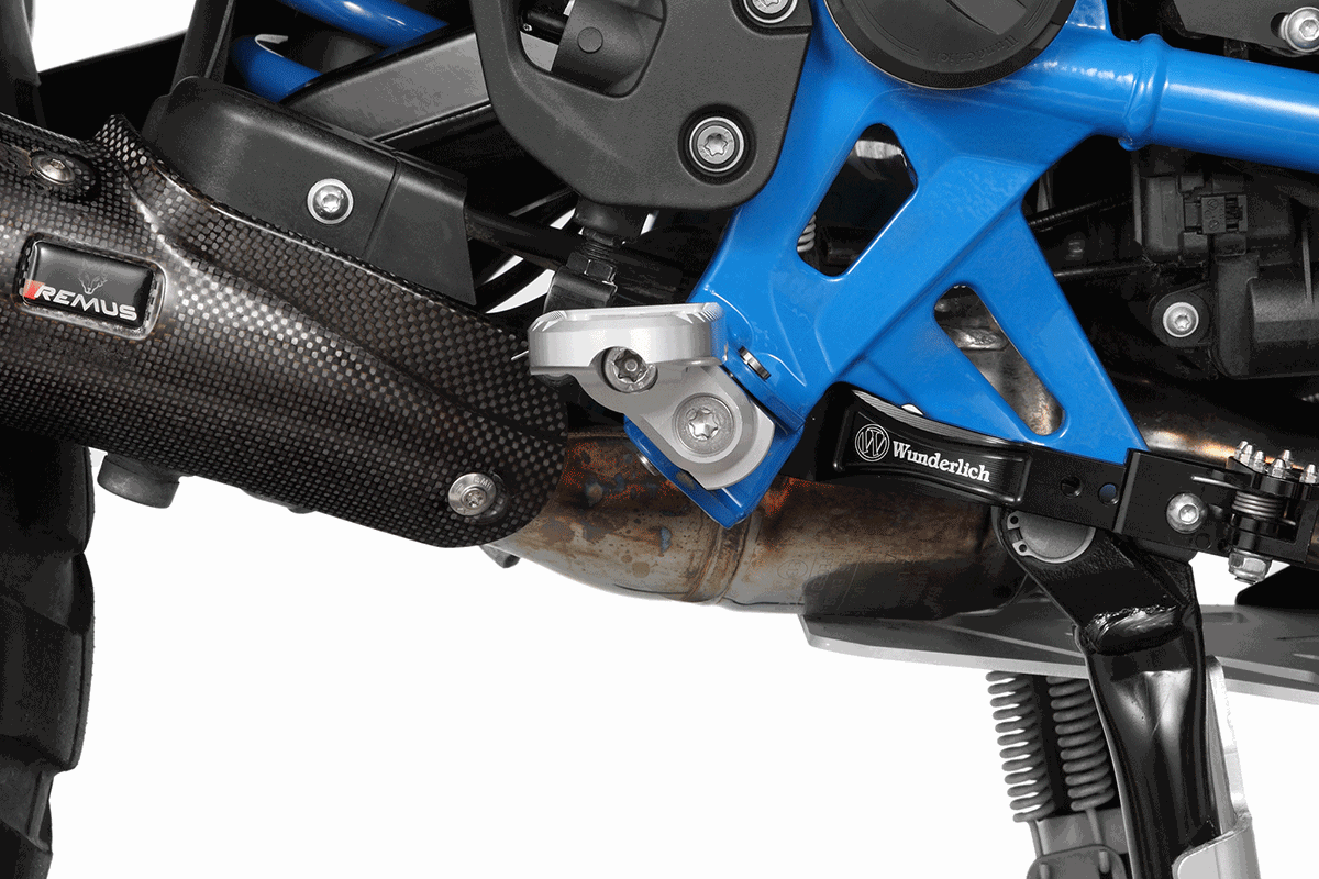 Die Basis des Systems ist das für das jeweilige Fahrzeugmodell passende, silberfarbene oder schwarze Variogelenk, welches anstelle der Fußraste an der Fußrasten-Halterung montiert wird.