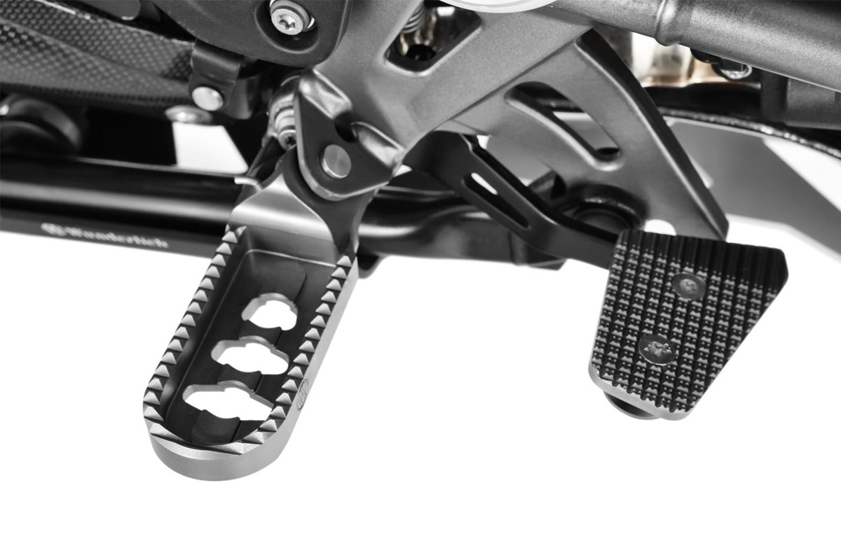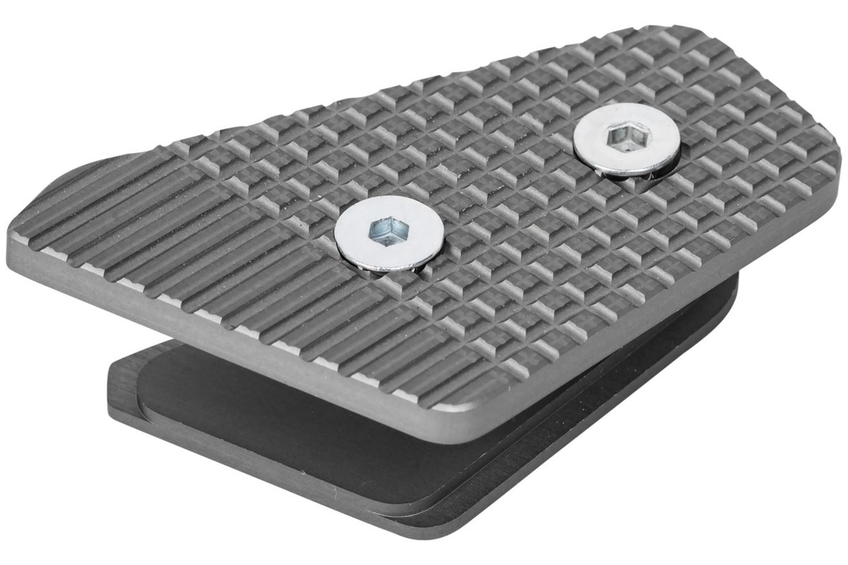 Zudem verhaken sich profilierte Stiefel unangenehm im Original-Hebel. Die Verbreiterung ermöglicht ein ergonomisches Betätigen der Bremse ohne anschliessend das Bein anheben zu müssen, um sich wieder vom Bremshebel zu befreien.