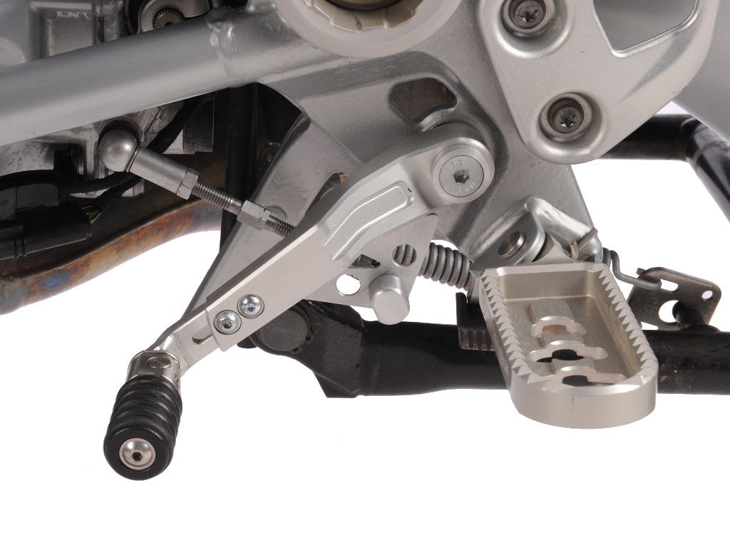 Jetzt ist der Schalthebel auf jede Schuhgröße/Gewohnheit optimal einstellbar und die GS lässt sich dank des rollengelagerten Schalthebels kinderleicht schalten. Und das Verbiegen des Schalthebels wird in doppelter Hinsicht verhindert. Schon ein harmloser Umfaller oder Ast zwischen Hebel und Gehäuse können die Schaltwelle verbiegen.