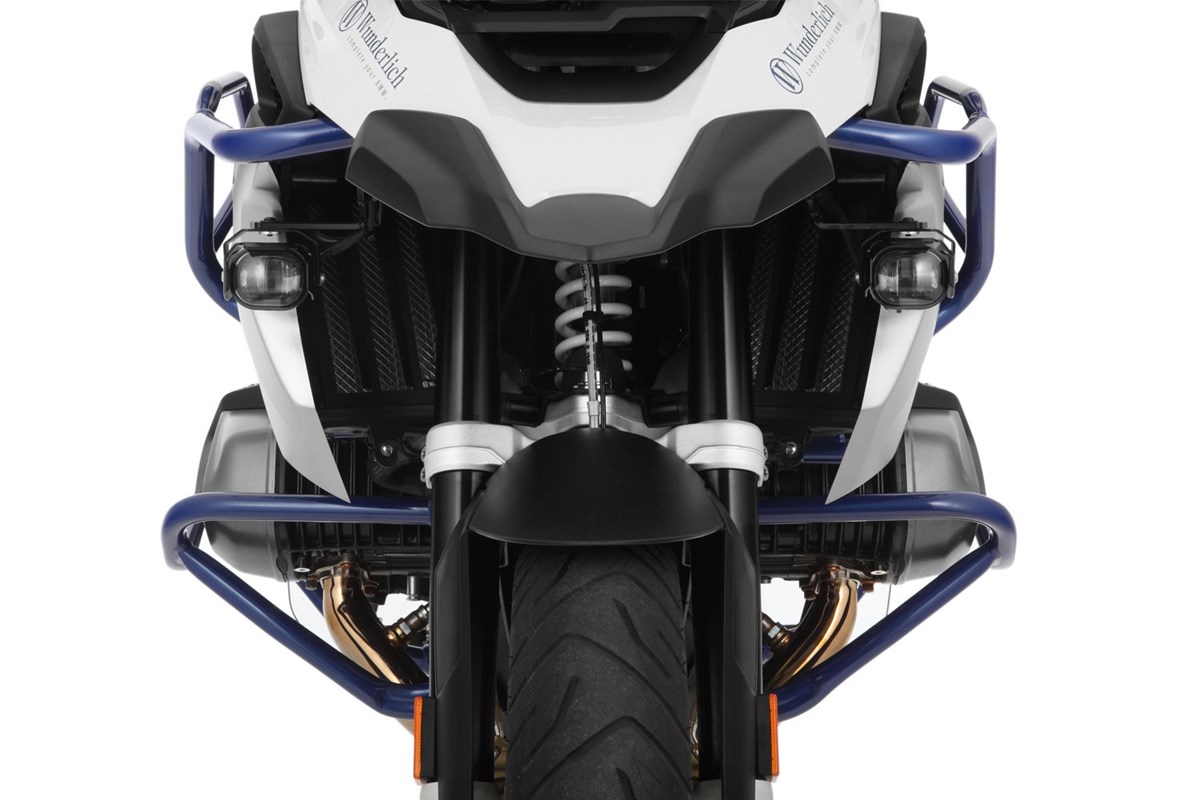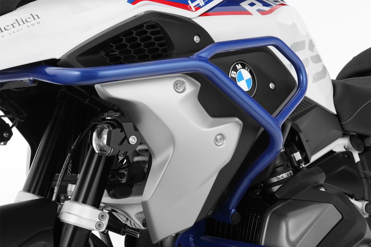 Angelehnt an das Design der R 1250 GS Style HP gibt es bei Wunderlich den Motorschutzbügel auch im Blauton der HP. Damit schützt er nicht nur das Motorrad, sondern vervollständigt auch das gesamte Style-Konzept. Die Edelstahloberfläche ist pulverbeschichtet.