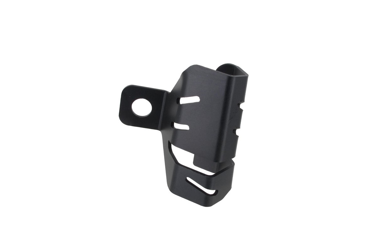 Unser robuster, effektiver Lambdasonden Schutz deckt die im rechten Abgaskrümmer verschraubte empfindliche Lambdasonde sowie das jeweils zugehörige Kabel ab und sorgt für deren optimalen mechanischen Schutz der Sonde. Er besteht aus eloxiertem Aluminium mit 1,5 mm Blechstärke. Die präzise Kantung, die die Bauteilsteifigkeit zusätzlich erhöht sorgt in Verbindung mit der soliden Befestigung für eine effektive Schutzwirkung. Der Lambdasonden Schutz ist mit Öffnungen versehen, die einem Hitzestau vorbeugen. Form und Funktion integrieren sich optimal ins Motorlayout.