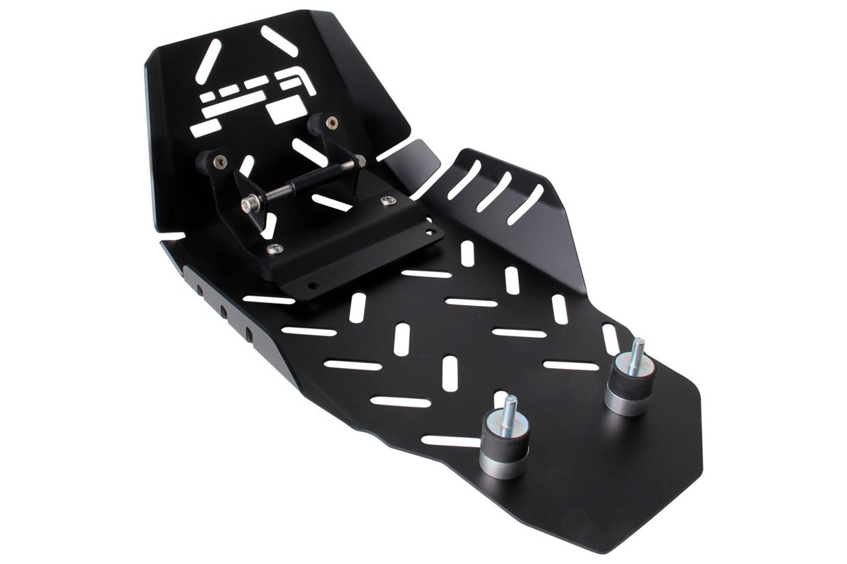 Neben unserem Motorschutz „Dakar“, der einen soliden Grundschutz bietet, haben wir für die extremsten Einsätze den Motorschutz Extrem entwickelt. Bei beiden Varianten erfolgt eine Stoß entkoppelte Aufnahme zwischen Boden- und Motorplatte mittels speziellen Silentblöcken.
