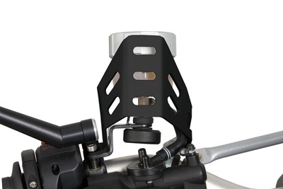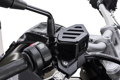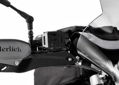 Von einer einfachen Spange gehalten kann der Bremsflüssigkeitsbehälter durch eine Unachtsamkeit oder Schläge aus dem Halter springen.
