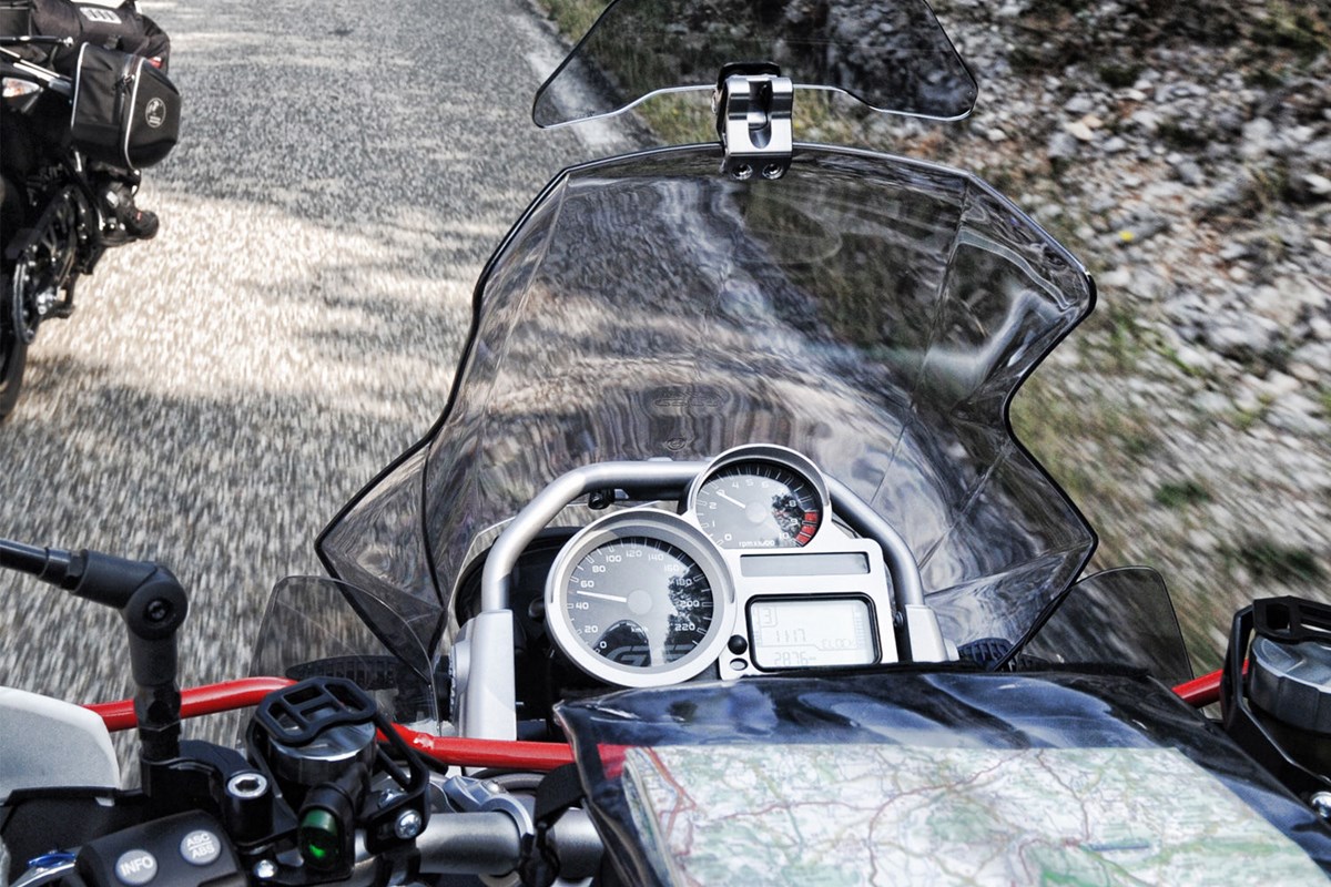 Eine teure Reparatur und nicht selten der Urlaubsabbruch sind die Folge. Drei kaputte Kupplungsbehälter später haben wir diesen Schutz entwickelt, der sich über eine konstruktiv komplexe Halterung direkt an der Lenkerverschraubung abstützt und noch zusätzlich am Protektorenhalter -(Protektoren müssen nicht montiert sein) befestigt wird. Deshalb machte es Sinn, dickwandiges Aluminium zu -verwenden, das Schläge an die ausgeklügelten Halter weitergeben kann, ohne selbst zerstört zu werden.