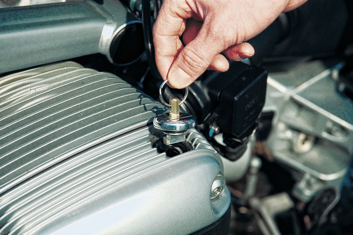 Dieser Ölstopfen verfügt über ein ungewöhnliches Innensechskantmaß und lässt sich dadurch nicht so schnell entwenden wie das Original. Am Ölstopfen-Schlüssel ist ein O-Ring in einer Nut eingelassen, damit er beim Einstecken in den Stutzen sanft geklemmt wird und der Stutzen leicht herausziehbar ist.