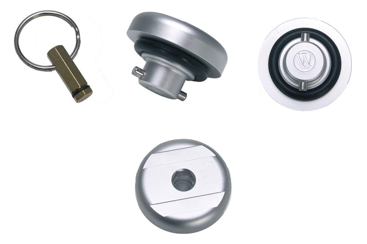 NC-gedrehtes, eloxiertes, hochfestes Aluminium. Inklusive Innensechskantschlüssel (liegt als Schlüsselanhänger bei) aus Messing und neuem O-Ring.
