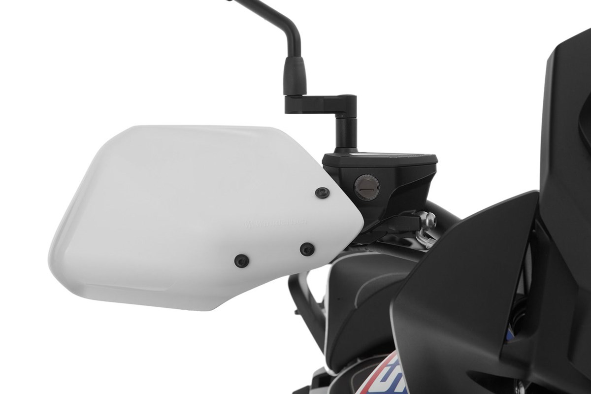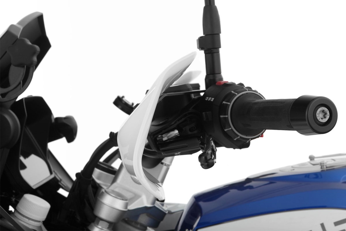 Lange war der Einsatz von Handprotektoren ausschließlich Offroad-Maschinen vorbehalten. Dies ist völlig unverständlich, bieten sie doch viele Vorteile. Kalte, klamme oder nasse Hände sind unangenehm, genau wie Steinschlag, Straßenschmutz jeder Art oder bei hohen Geschwindigkeiten aufprallende Insekten. Mit unseren Handprotektoren für die BMW sorgen wir für Abhilfe. Mehr Schutz geht nicht, aber so viel Schutz sollte schon sein. Wir haben unsere Handprotektoren zur Wasserableitung mit einem nach außen ragenden Kragen versehen, der Spritzwasser nach außen lenkt und seitlich abfließen lässt. Abgesehen von der Funktionalität sind unsere Handprotektoren dezent und ansprechend designt. Die Handprotektoren bestehen aus Acryl, sie sind thermisch beständig, kratz- und bruchfest und unempfindlich gegenüber Benzin. Sie lassen sich einfach und schnell montieren. Sie sind verwendbar mit und ohne Griffheizung sowie Lenkerendgewichten und unserer Cruise Control.