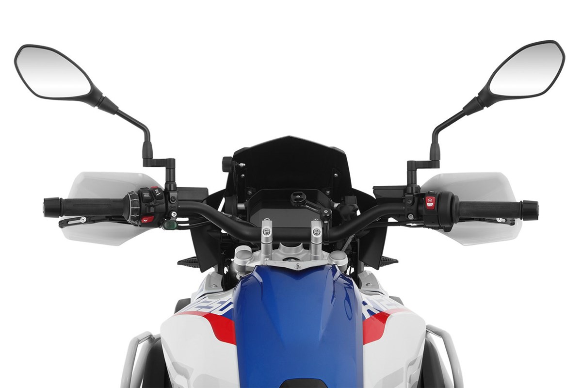 • Je nach Sitzposition kann die Sicht auf die original Verkleidungsspiegel eingeschränkt sein. Daher empfehlen wir die Verwendung unserer Zusatzspiegel Art.Nr. 23640-000. Die Spiegel lassen sich ohne großen Aufwand an dem Halter der Handprotektoren befestigen und sorgen für einen uneingeschränkten Blick nach hinten.