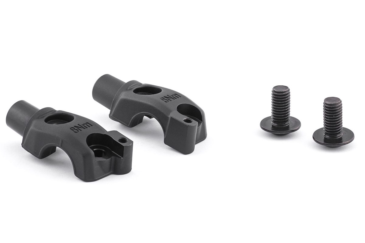 Der Anbausatz besteht aus zwei Klemmschellen mit Montagematerial und ermöglicht die Montage der Handprotektoren "Clear Protect" in Verbindung mit SOS-Taste und Schalter für die Zusatzscheinwerfer. Alternativ ist er auch für die Montage zusätzlicher Spiegel an RT-Modellen geeignet.