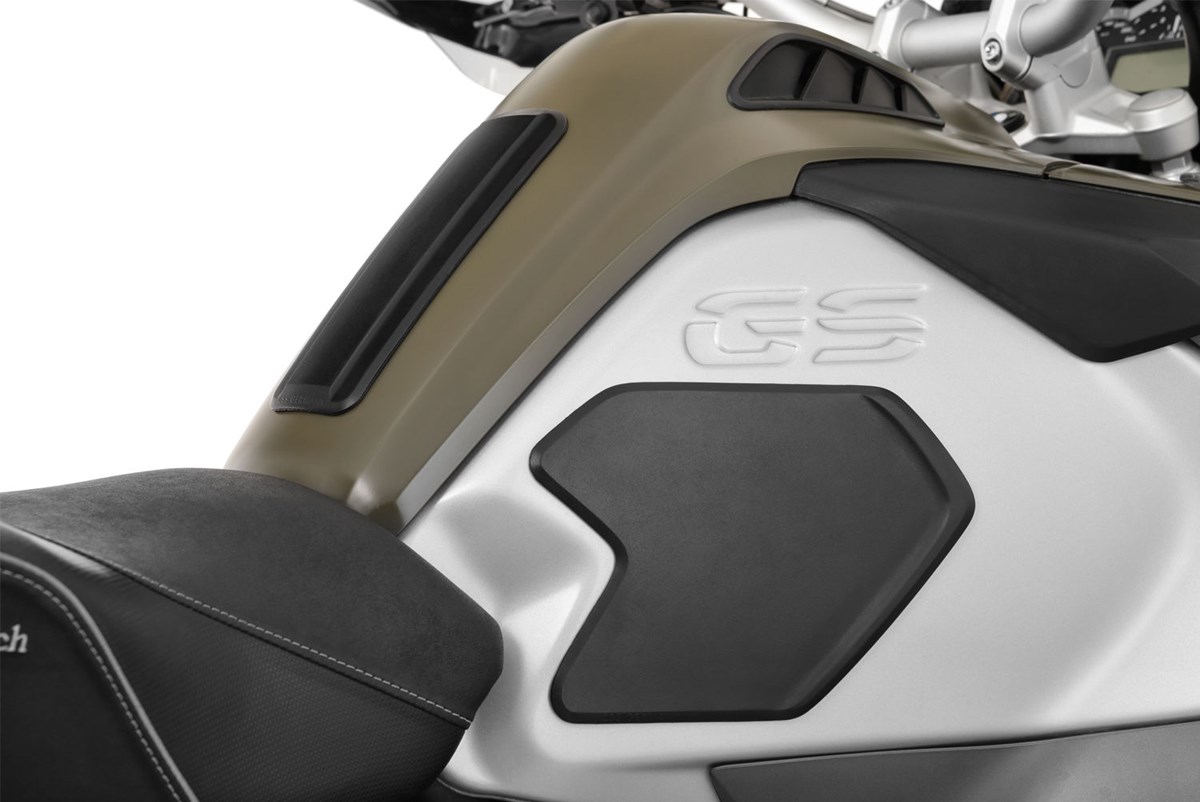 Genau auf das Design der BMW abgestimmter Satz Tankpads, die an allen Kontaktstellen effektiv vor Kratzern, Beschädigungen und Abrieb am Tank schützen.