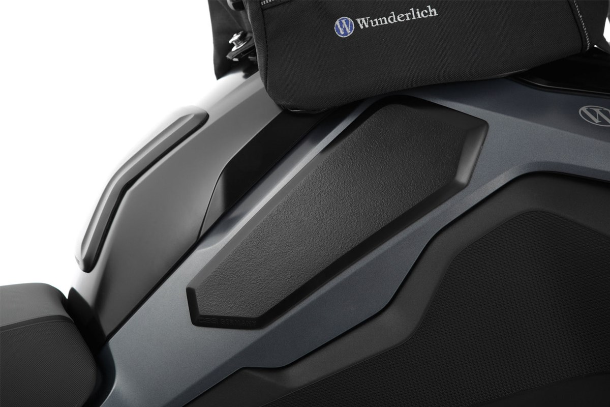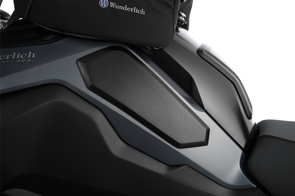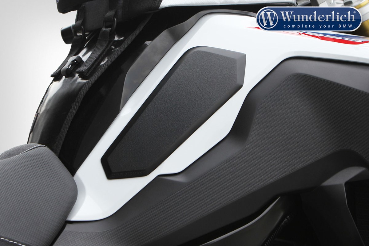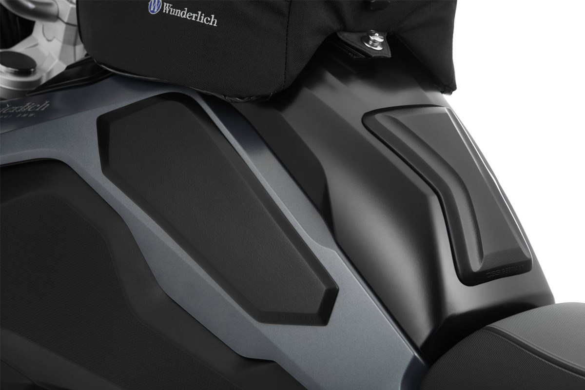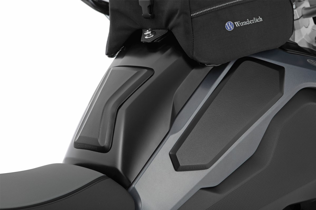 Das dreiteilige Tankpadset ist auf das Design der GS abgestimmt. Die Pads schützen an allen Kontaktstellen effektiv vor Kratzern, Beschädigungen und Abrieb. Die seitlichen Pads verbessern den Knieschluss und vermitteln durch erhöhte Haftung einen direkteren Kontakt zum Motorrad. Damit werden Fahrgefühl und Fahrspaß deutlich gesteigert. Der Werkstoff besteht aus hochwertigem und griffigem schwarzem Kunststoff, ist stoßabsorbierend und leicht genarbt. Die Pads sind selbstklebend ausgerüstet.