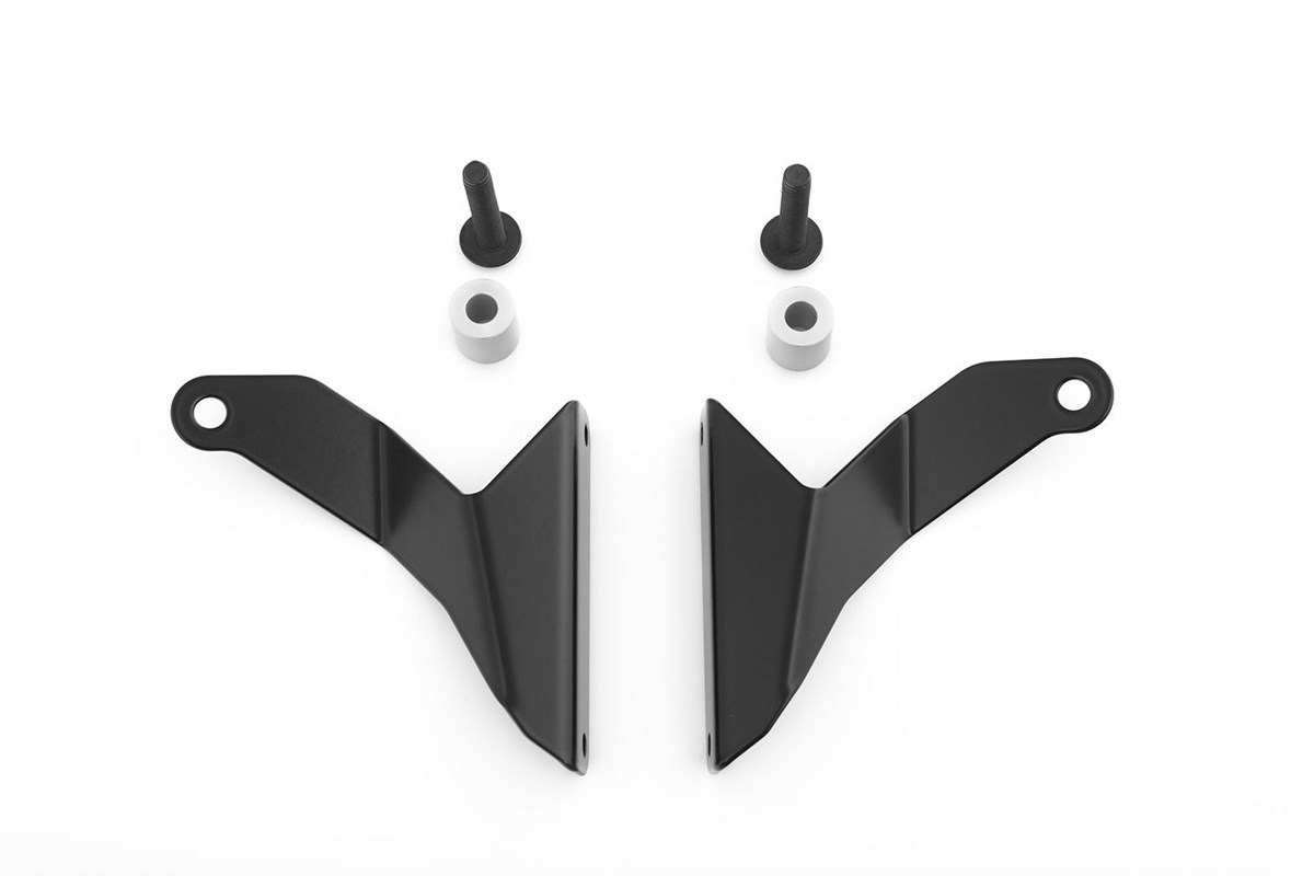 Die Scheibenverstärkung wird zwischen der originalen Scheibenhalterung und der Scheibe befestigt und zusätzlich an der Scheinwerferhalterung seitlich verschraubt. So wird die originale Halterung verstärkt und gestützt um Vibrationen der Scheibe zu minimieren.