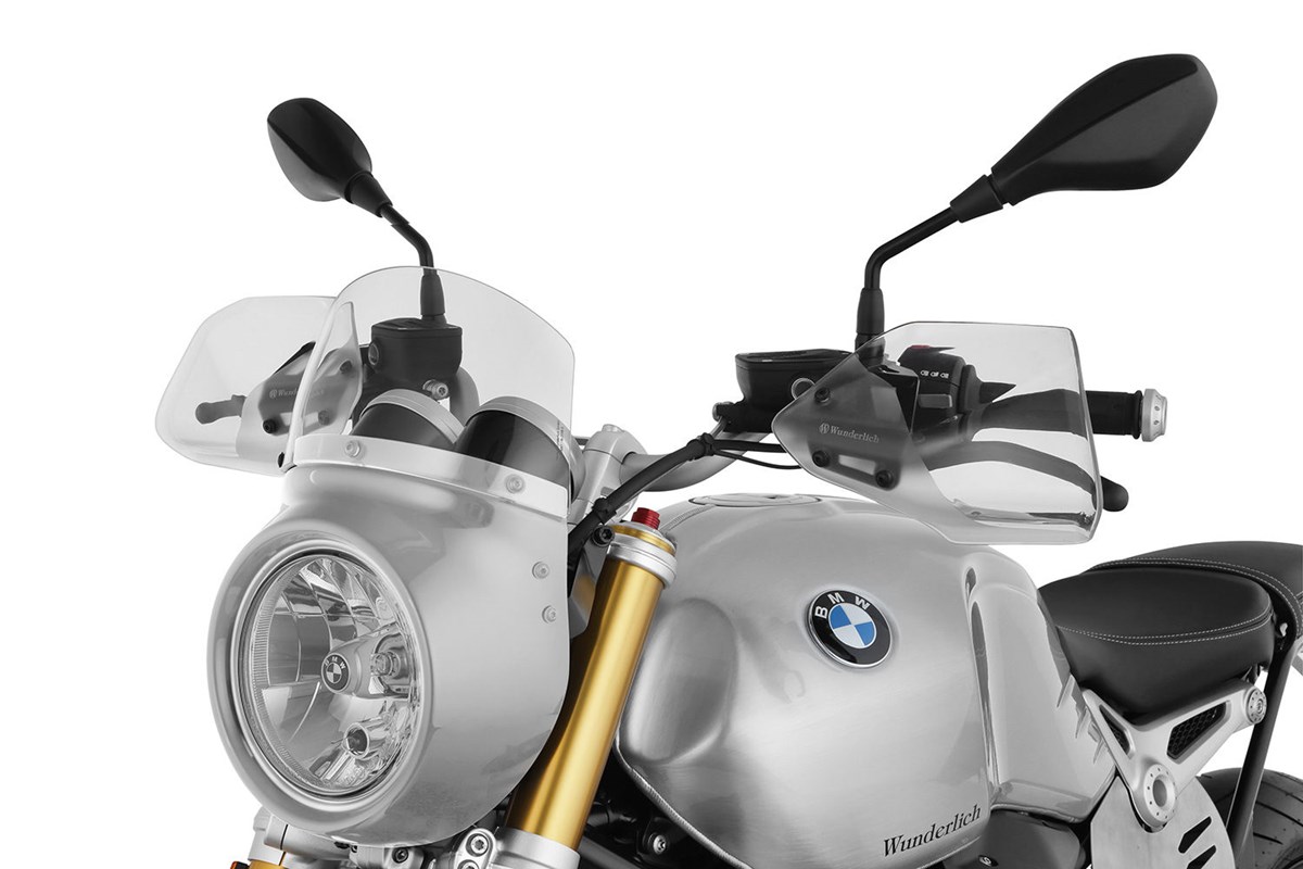 Kurze Verkleidungsscheibe zur Lampenmaske "VINTAGE" für die R nineT/R 100 R. Lieferbar in transparent, rauch und gelb. Einfache Montage mit drei Schrauben.