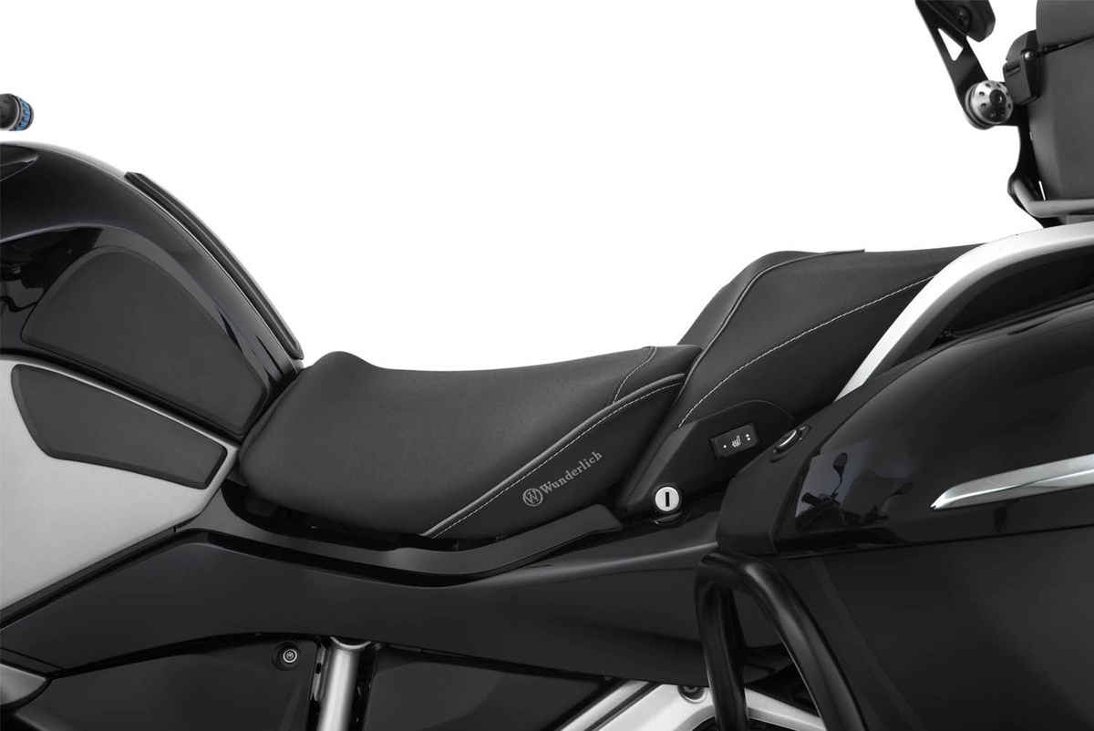 Sie bieten perfekten Halt und aktive, sichere Kontrolle bei forcierter Fahrt, ganz besonders auch beim Bremsen: Wer kennt das nicht, wenn die Sozia beim Ankern plötzlich von hinten schiebt und man sich unvermittelt abstützen und gleichzeitig, in einer vielleicht brenzligen Lage, auch noch lenken muss. Mit Wunderlichs eigens entwickelter Stützkontur gehören diese Schreckmomente beim Bremsen der Vergangenheit an. Die innovative, ergonomische 3-D-Kontur sorgt auch dafür, dass Druckstellen an den Innenschenkeln beim Stehen an der Ampel, passé sind.