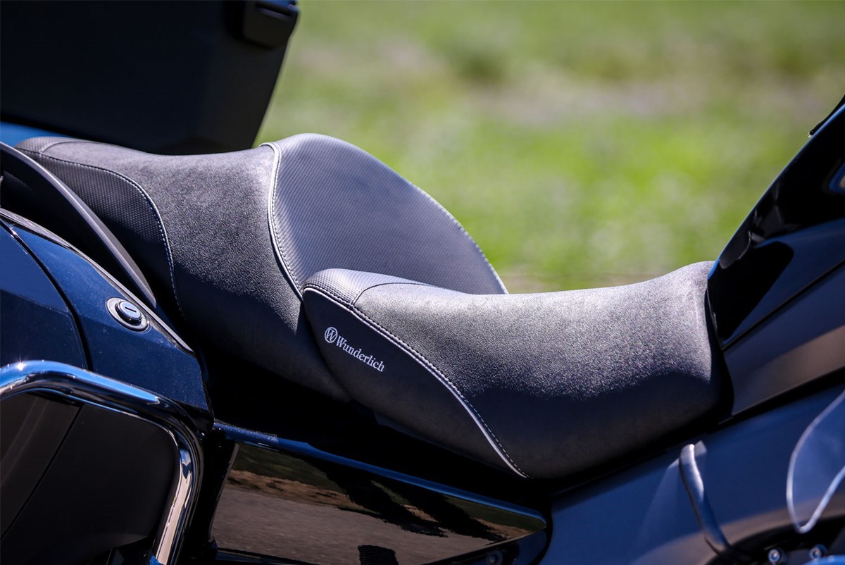 Wir fertigen unsere Sitze mit einer charakteristischen, ergonomischen 3-D-Kontur, die den Fahrer mit seinem BMW-Motorrad eins werden lässt. Form und Neigung des aufwändig verarbeiteten, progressiv aufgebauten, zweischichtigen Sitzbankkerns, in den ein Sitzheizungselement integriert ist, unterstützen die ergonomische vorteilhafte, natürliche Haltung des Beckens. So integriert, fährt es sich einfach entspannt und damit aktiv. Und, kein Zweifel, entspanntes Sitzen schafft ein Plus an passiver Sicherheit. Mit der ThermoPro Beschichtung liegt die Temperatur dieser Sitzbank im Hochsommer in praller Sonne um bis zu 25°C niedriger im Vergleich mit herkömmlichem, unbehandeltem Bezugsmaterial. Passend dazu haben wir eine Beifahrersitzbank im Programm.