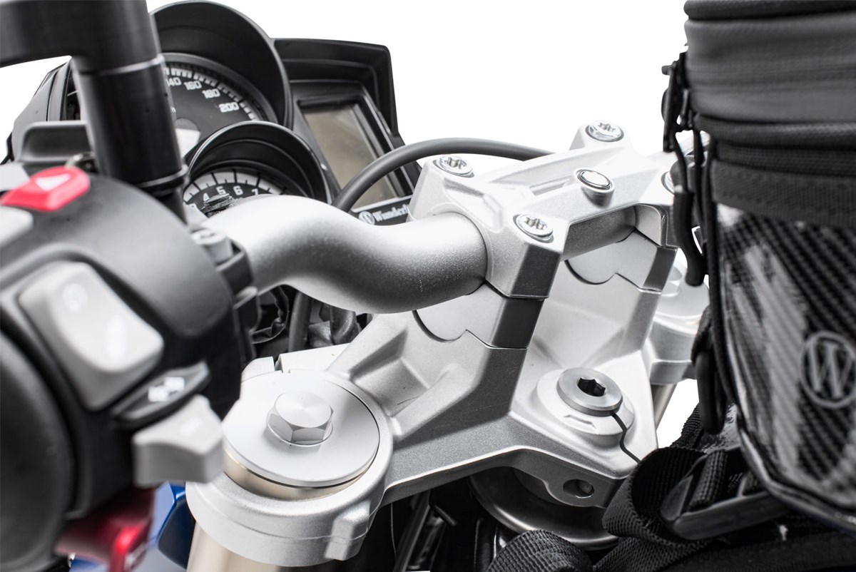 Auch für die F 800 R ist die Lenkererhöhung eine besonders sinnvolle Investition, da gleichzeitig die Neigungsmöglichkeiten des Lenkers deutlich zunehmen, was sich wiederum positiv auf die Sitzposition auswirkt. Der Lenker wird um 25 Millimeter erhöht und leicht zum Fahrer verschoben. Mit dieser Erhöhung hat bis dato jeder F 800 R-Fahrer seine ganz persönliche Einstellung gefunden.