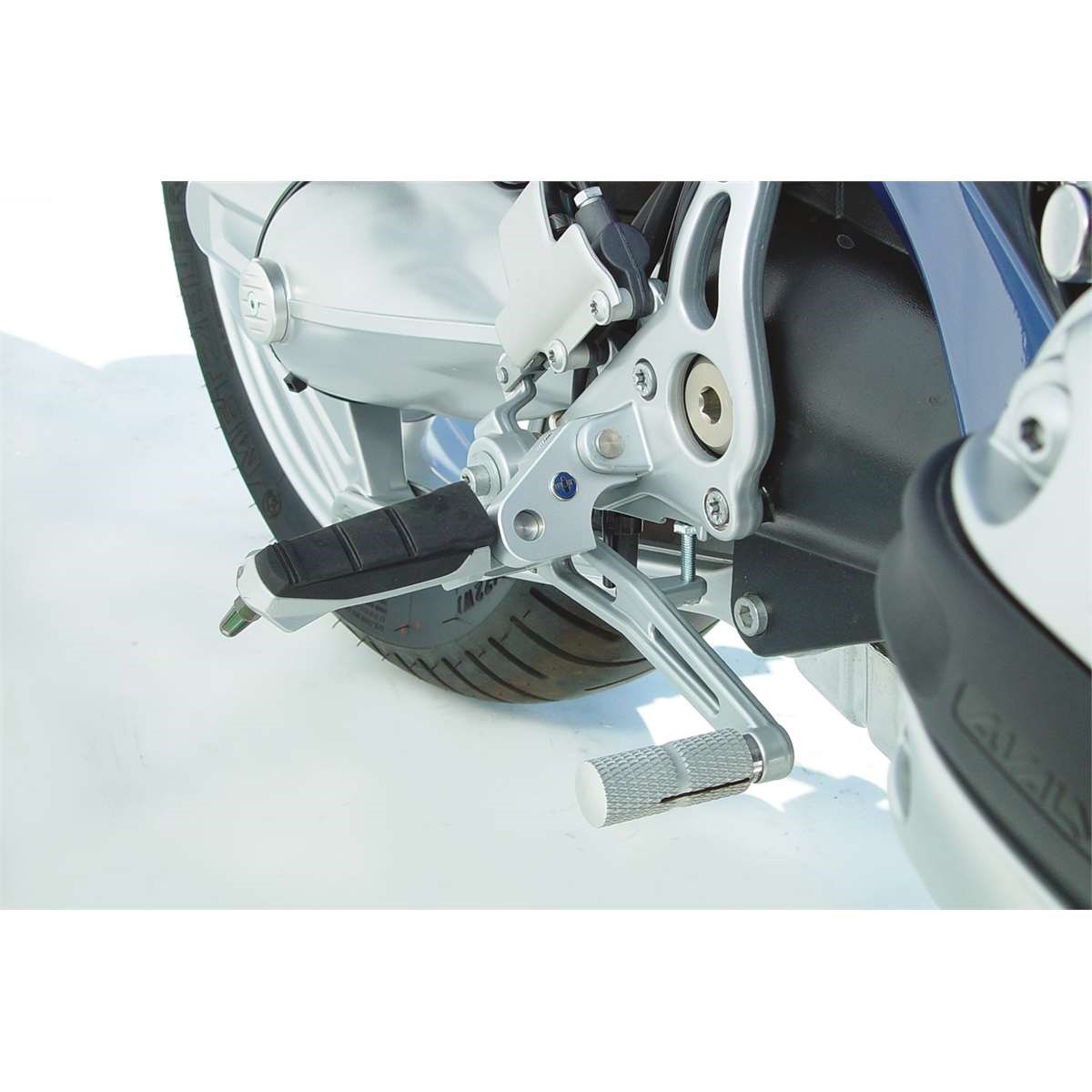 Durch den Versatz der Fußrasten kommt es zu einem entspannten Fahrgenuss. Weg von der verkrampften Beinhaltung und hin zu einer neuen Einheit mit dem Fahrzeug. Die Maschine lässt sich so viel besser in die Kurven drücken und der Langstreckenkomfort nimmt deutlich zu. Neben der Tieferlegung werden die Rasten auch leicht nach vorne versetzt.
