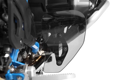 Aus 6,5 mm dickem Acryl-Kunststoff gefertigt, kratzfest, bruchsicher und sturzerprobt(!). Schräglagensicher zugeschnitten. Vibrationsfreie, hitzeentkoppelte und kunststoffbeschichtete Halterung.