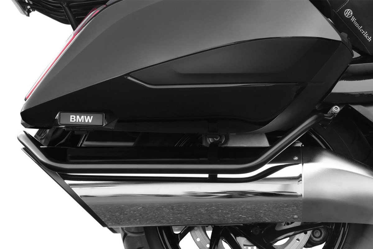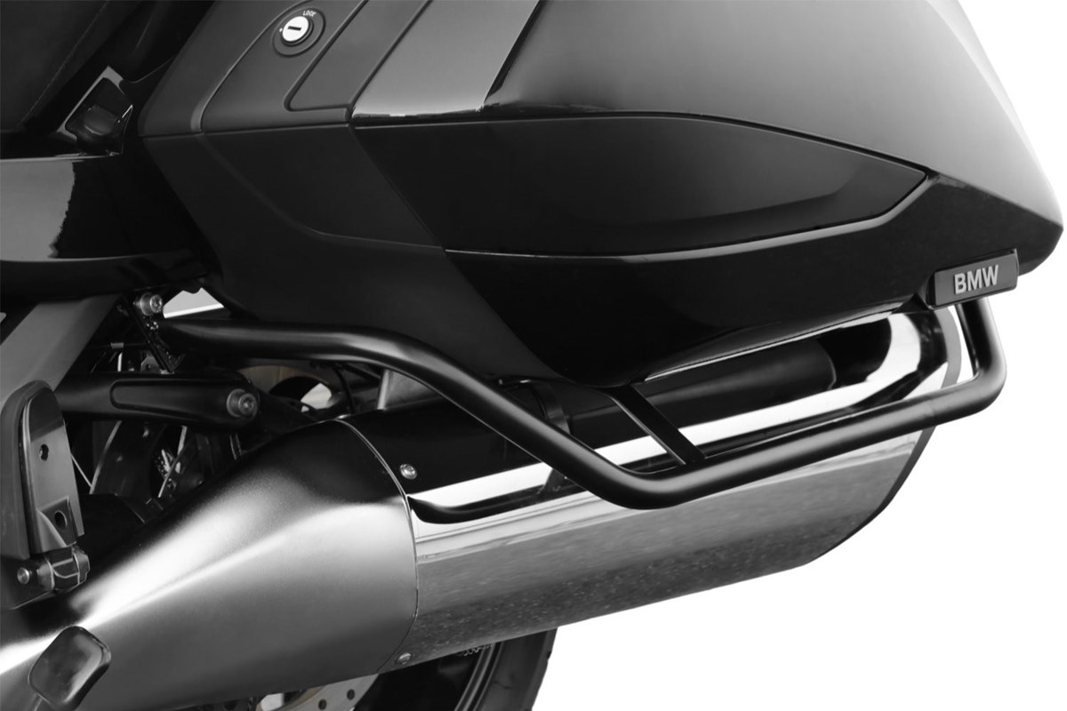 Diese Kofferschutzbügel nehmen das einzigartige Design der K 1600 B auf und werden unter den Koffern hindurchgeführt. Sie integrieren sich optisch hervorragend und setzen den sicheren Schutz der schweren K 1600 B/Grand America zum Fahrzeugheck fort. Bei einem Umfaller sind die herausragenden Koffer sehr schnell beschädigt, diese Bügel schützen zuverlässig vor teuren Reparaturen.