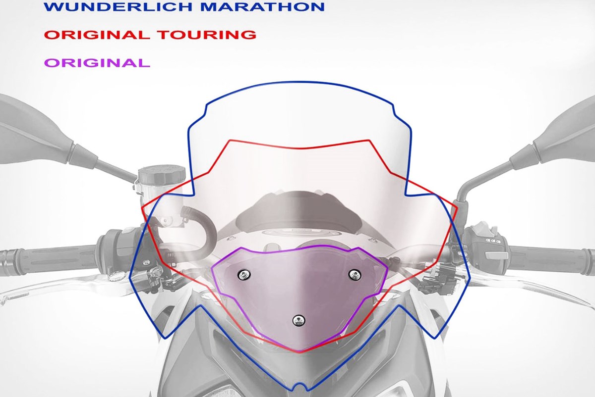 Bis in den hohen Geschwindigkeitsbereich nimmt die Scheibe effektiv den Winddruck vom Oberkörper.