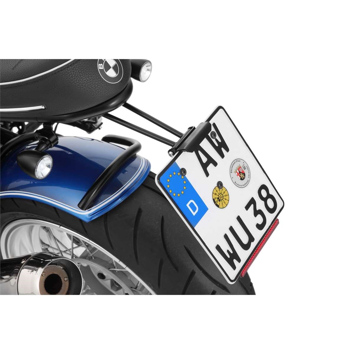 Filigran und doch stabil. Der filigrane Kennzeichenträger »RETROSPORT« ergänzt unseren Heckumbau »SIXDAYS II«. In Kombination entsteht so ein attraktives, optisch leichtes, reduziertes Heck, mit dem sich das klassische Erscheinung der R nineT auf individuelle Weise unterstreichen lässt. Dazu passt es, dass die Verlegung der Verkabelung unsichtbar innerhalb der Arme des Auslegers erfolgen kann. Der zugehörige, dezente und E-geprüfte Reflektor fügt sich in unser Designkonzept ein. Die konstruktive Auslegung und der Einsatz hochwertigen Edelstahls sorgen für die nötige Steifigkeit und Stabilität des in der Neigung einstellbaren Kennzeichenträgers.