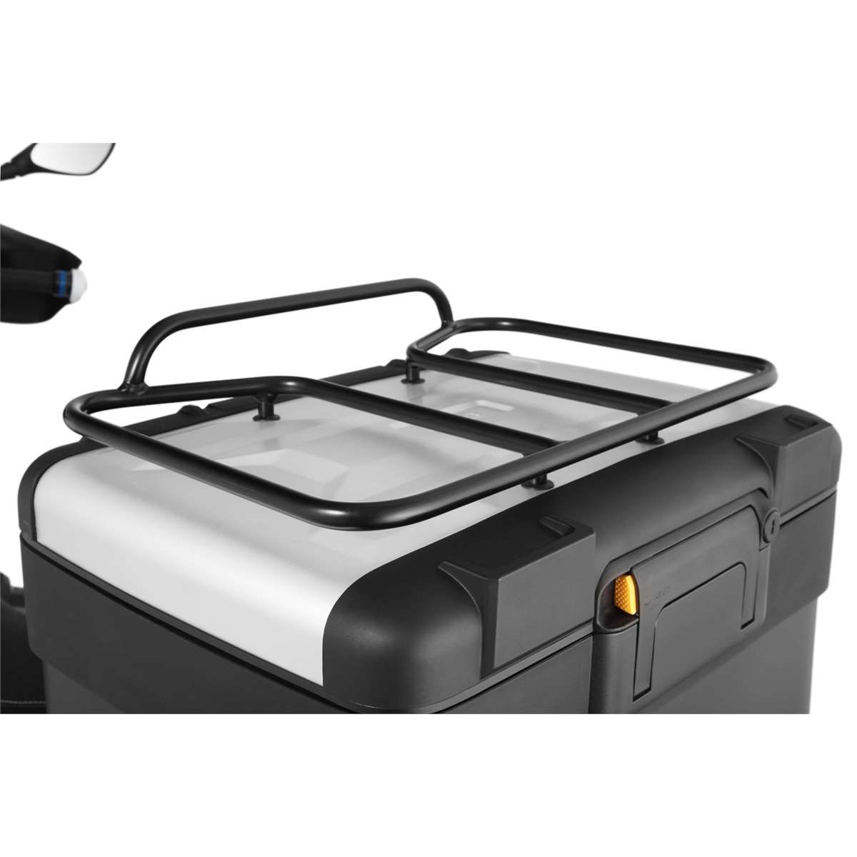 Speziell für das serienmäßige Vario-Topcase der GS bieten wir diese zweckmäßige Topcase-Reling an. Für noch mehr Gepäck, alles was schnell zur Hand sein soll, oder im Topcase oder den Koffern keinen Platz mehr findet. Perfekt auch als Basis zur Befestigung unseres Rack Packs oder der Topcase-Tasche  ELEPHANT. Die Reling besteht aus pulverbeschichtetem Präzisions-Stahlrohr und wird inklusive aller Anbauteile geliefert.