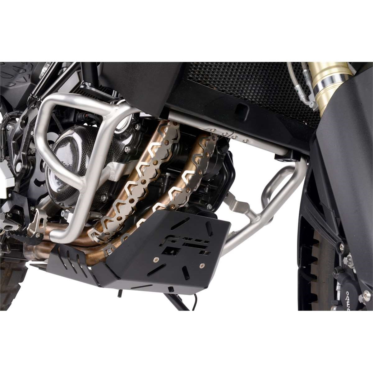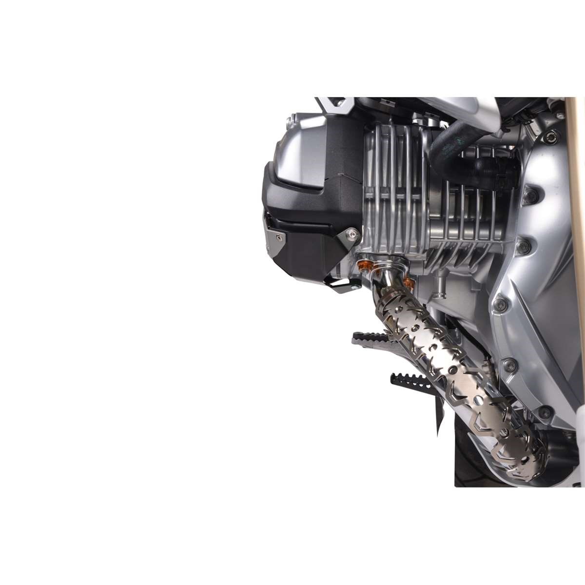 Die hochempfindliche Krümmeranlage war an unserer GS nach dem ersten Geländeausflug nicht mehr wiederzuerkennen. Sie war übersäht von Beulen und verzogen. Die exponierten Rohre liegen im direkten Schussbereich des Vorderrades. Alles was vom Vorderrad auf- und abgeschleudert wird, kann ungehindert auf die Rohre schlagen.