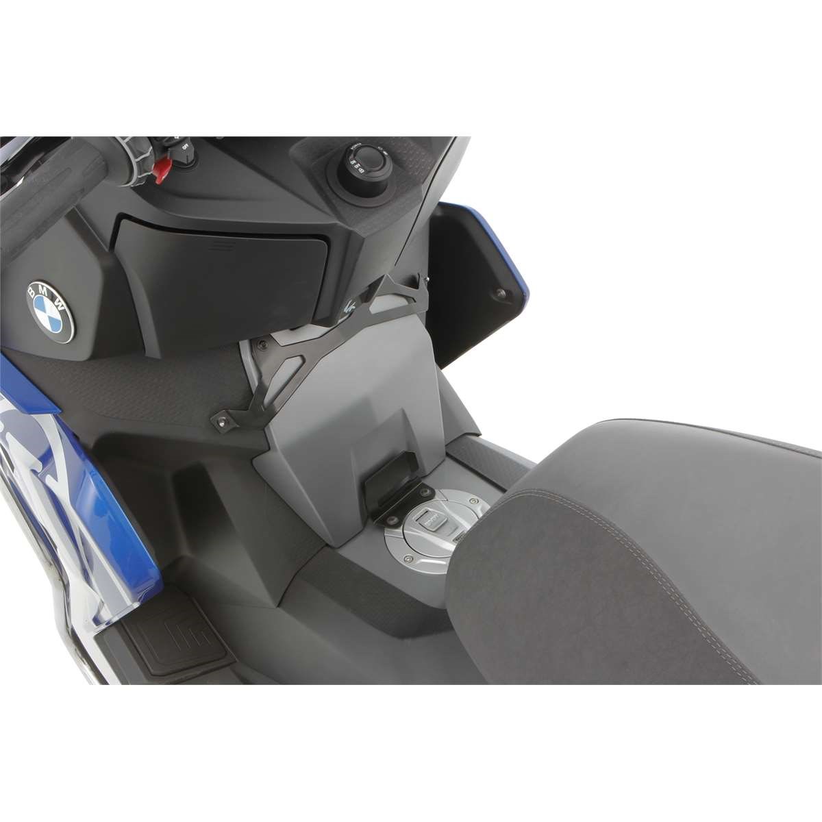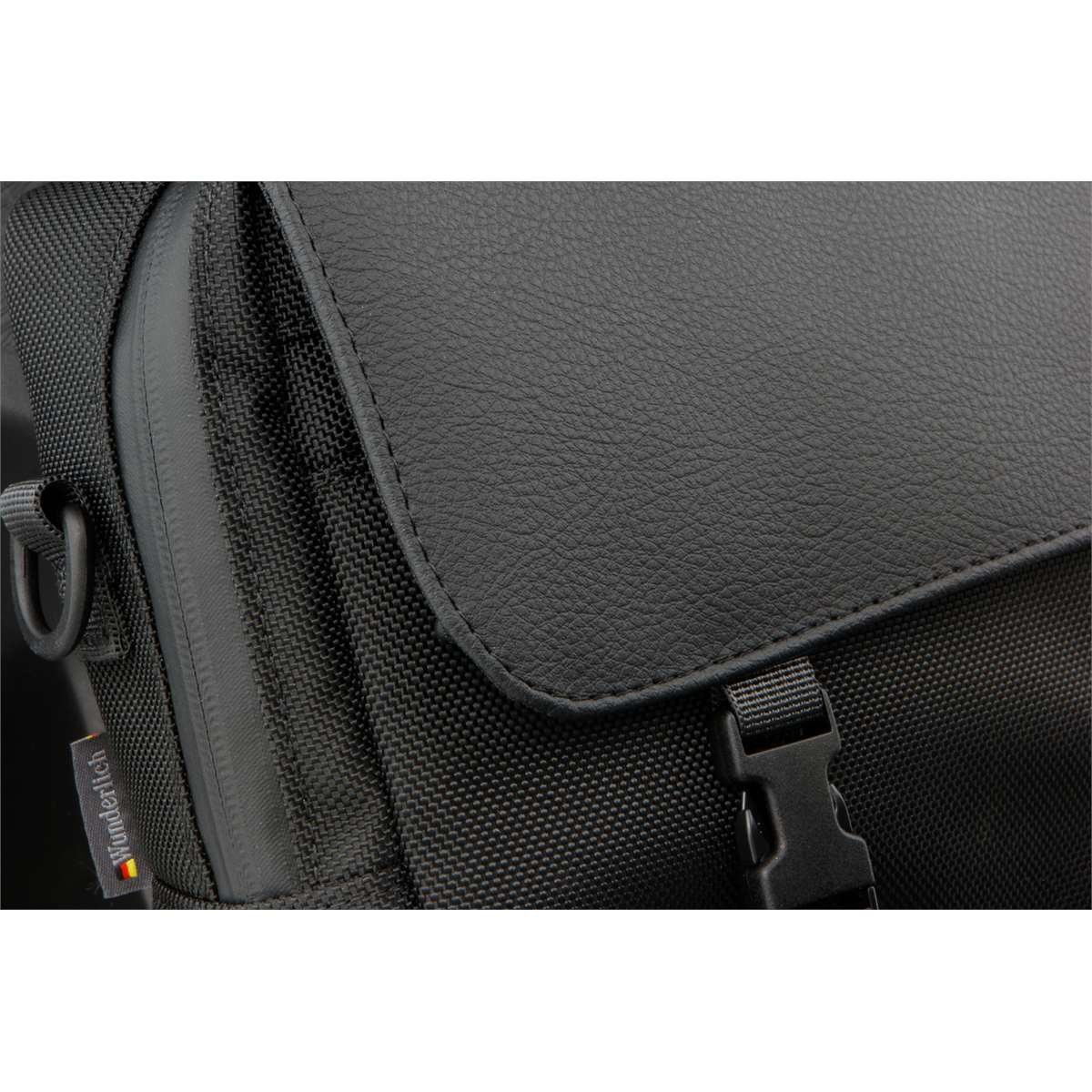 Maßgeschneiderte, perfekt integrierte und wasserabweisende Business Tasche für den BMW Scooter C 400 GT. Wir haben unser bewährtes und exklusives Konzept der sicheren Befestigung unserer Taschen mit LOXX-Schnellverschlüssen auf den Scooter übertragen. Die Tasche wird mit einem Handgriff mittels der einfach zu handhabenden LOXX Verschlüssen wettergeschützt unterhalb des Cockpits befestigt. Sie kann genauso schnell wieder abgenommen werden. Die außergewöhnliche Tasche besteht aus wasserabweisendem, UV-stabilem, Fluorcarbon-imprägniertem Cordura® 1000 Gewebe. Dieser robuste Stoff hat sich 1000-fach bei unseren hochwertigen Tankrucksäcken bewährt. Ausgerüstet mit Trageriemen und wasserabweisenden Reißverschlüssen. Die Tasche bietet mit einem Hauptfach und einem mit Reißverschluss versehenen kleineren Nebenfach reichlich Platz für allerlei Utensilien. Funktionales, praktisches Format DIN A4, für Notebook oder iPad bestens geeignet.