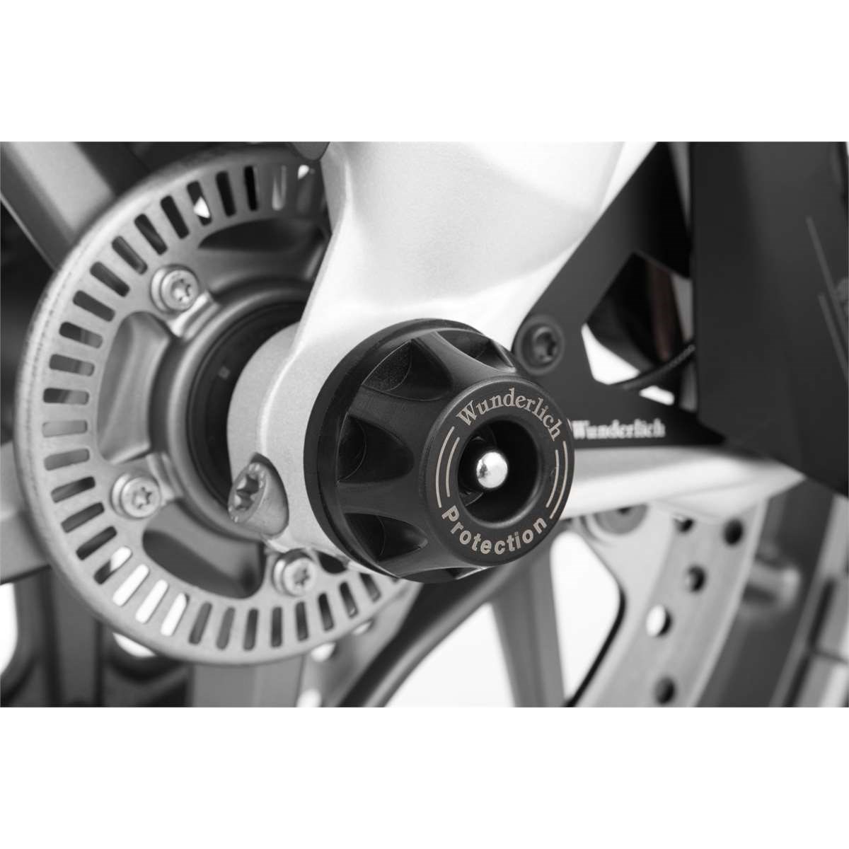 Die Achs-Schutzpads sorgen im Falle des Umfallens des Motorrads oder bei einem Sturz dafür, dass die Gabel, die Radachse und Bremsanlage effektiv vor Beschädigungen geschützt werden.
