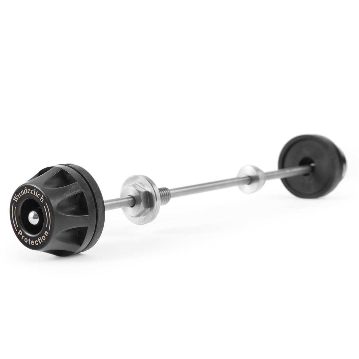 Die Achs-Schutzpads sorgen im Falle des Umfallens des Motorrads oder bei einem Sturz dafür, dass die Gabel, die Radachse und Bremsanlage effektiv vor Beschädigungen geschützt werden.