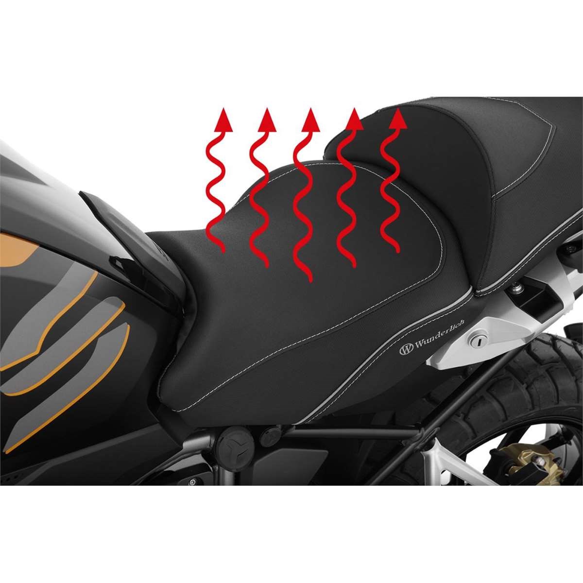 Sie bieten perfekten Halt und aktive, sichere Kontrolle bei forcierter Fahrt, ganz besonders auch beim Bremsen: Wer kennt das nicht, wenn die Sozia beim Ankern plötzlich von hinten schiebt und man sich unvermittelt abstützen und gleichzeitig, in einer vielleicht brenzligen Lage, auch noch lenken muss. Mit Wunderlichs eigens entwickelter Stützkontur gehören diese Schreckmomente beim Bremsen der Vergangenheit an. Die innovative, ergonomische 3-D-Kontur sorgt auch dafür, dass Druckstellen an den Innenschenkeln beim Stehen an der Ampel, passé sind.