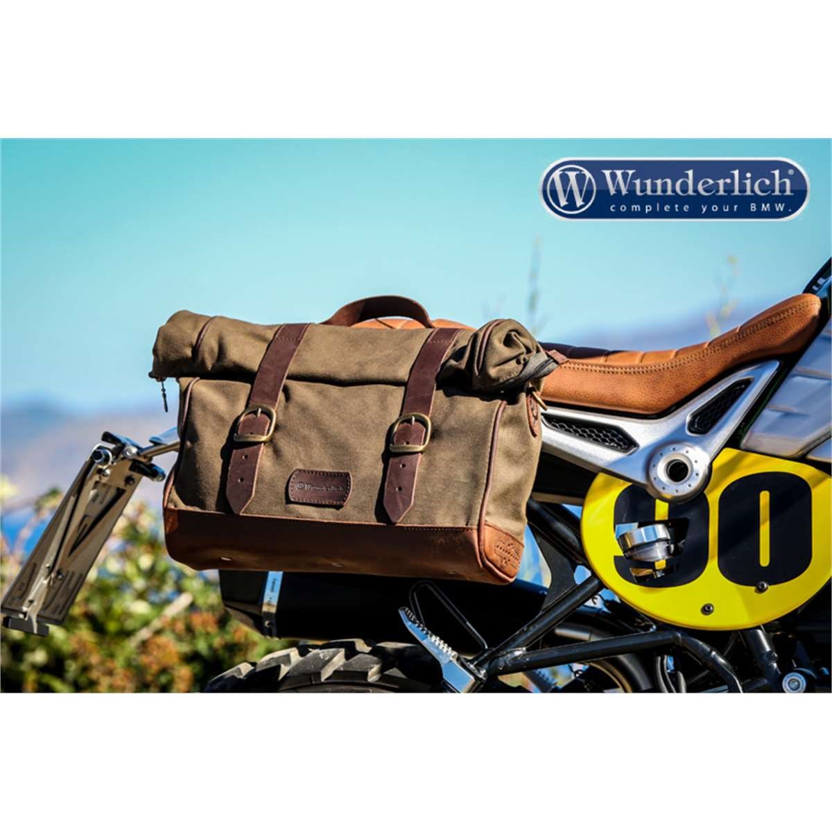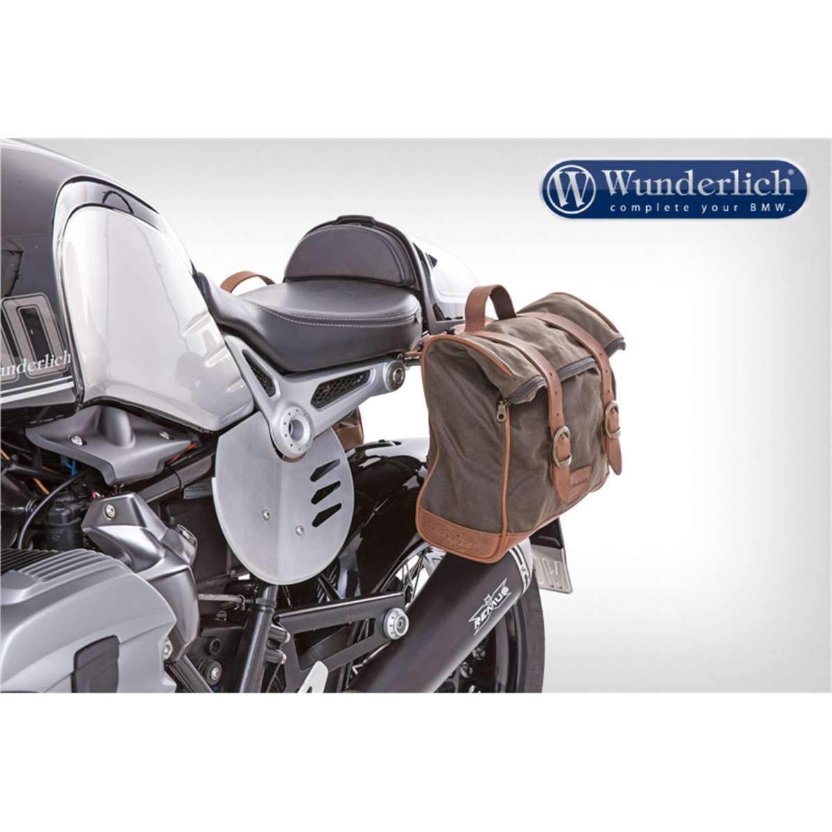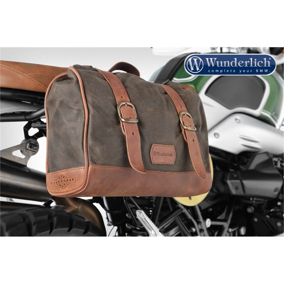 Diese stylischen, olivschwarzen Seitentaschen für rechts oder links aus gewachster Baumwolle sind nicht nur eine praktische Gepäcklösung, sie verleihen der R nineT auch einen ansprechenden, lässigen Look. Die Echtleder-Applikationen betonen die Wertigkeit, das widerstandsfähige Innenfutter macht die Taschen zum robusten Gebrauchsgegenstand. Ein Reißverschluss sowie zwei breite Lederriemen verschließen die Tasche zuverlässig und stilecht. Der Inhalt von 9,5 Litern je Tasche kann durch optional erhältliche wasserdichte Innentaschen vor jeder Witterung geschützt werden.