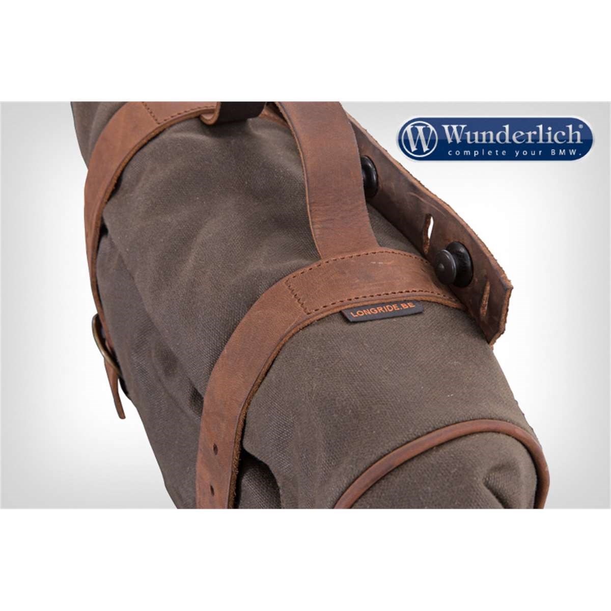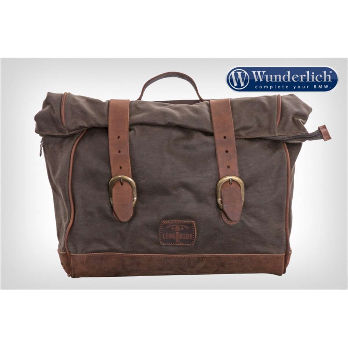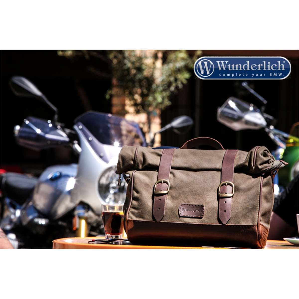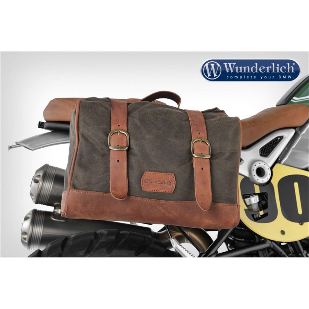 Diese stylischen, olivschwarzen Seitentaschen für rechts oder links aus gewachster Baumwolle sind nicht nur eine praktische Gepäcklösung, sie verleihen der R nineT auch einen ansprechenden, lässigen Look. Die Echtleder-Applikationen betonen die Wertigkeit, das widerstandsfähige Innenfutter macht die Taschen zum robusten Gebrauchsgegenstand. Ein Reißverschluss sowie zwei breite Lederriemen verschließen die Tasche zuverlässig und stilecht. Der Inhalt von 9,5 Litern je Tasche kann durch optional erhältliche wasserdichte Innentaschen vor jeder Witterung geschützt werden.
