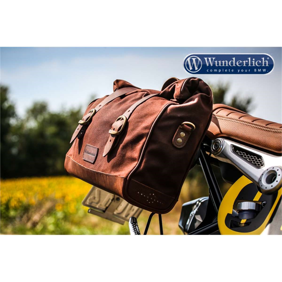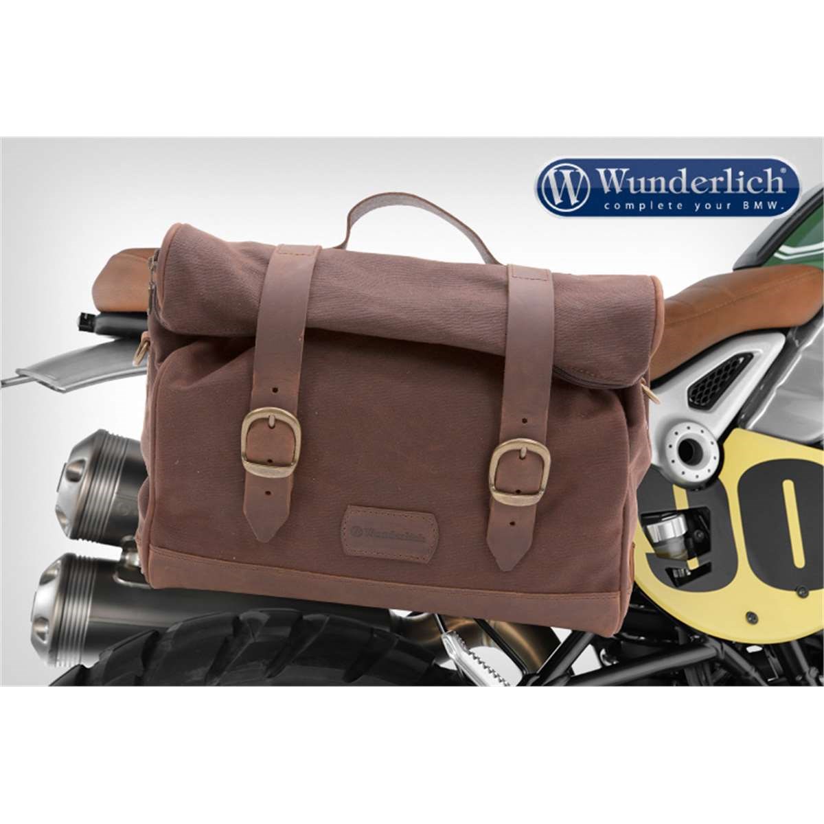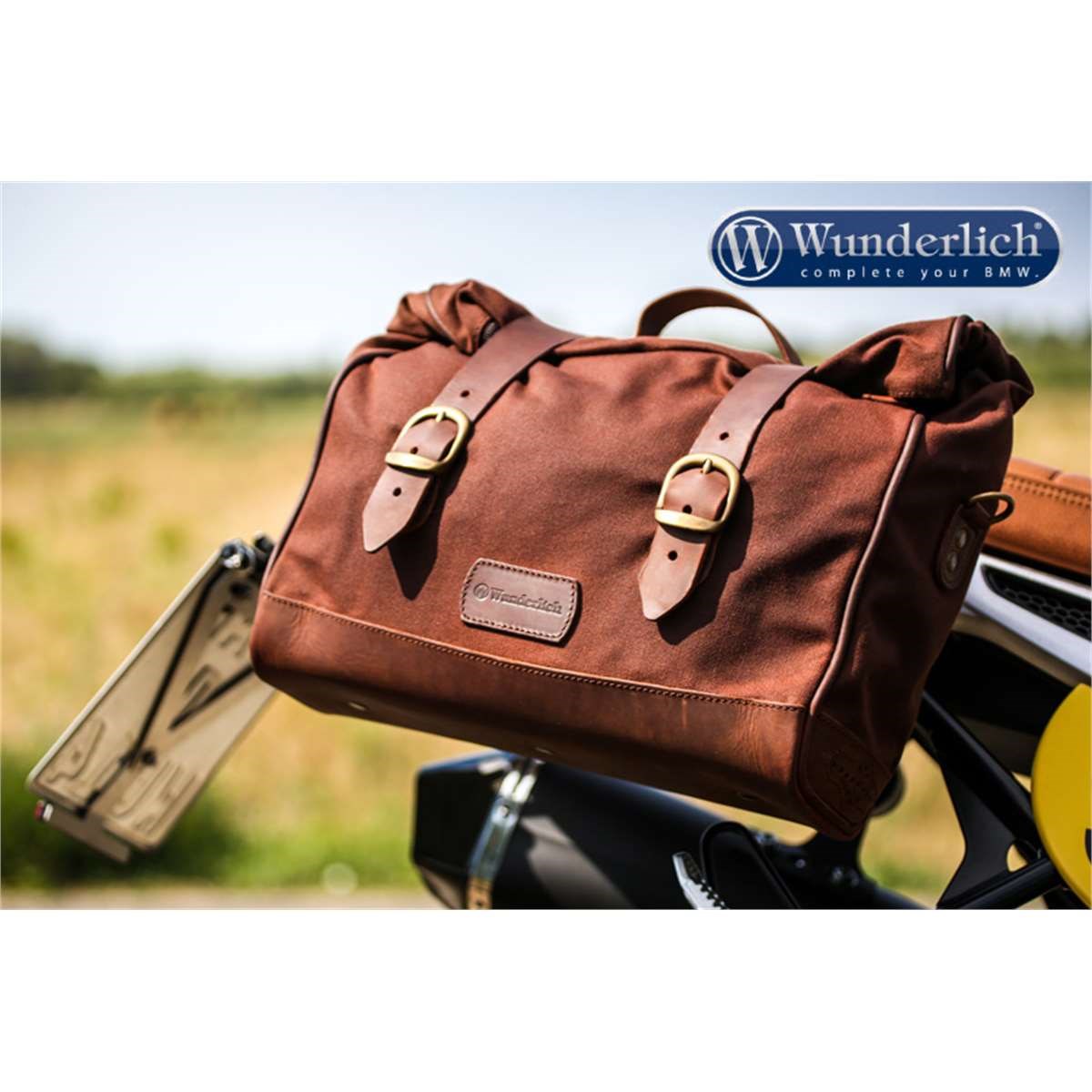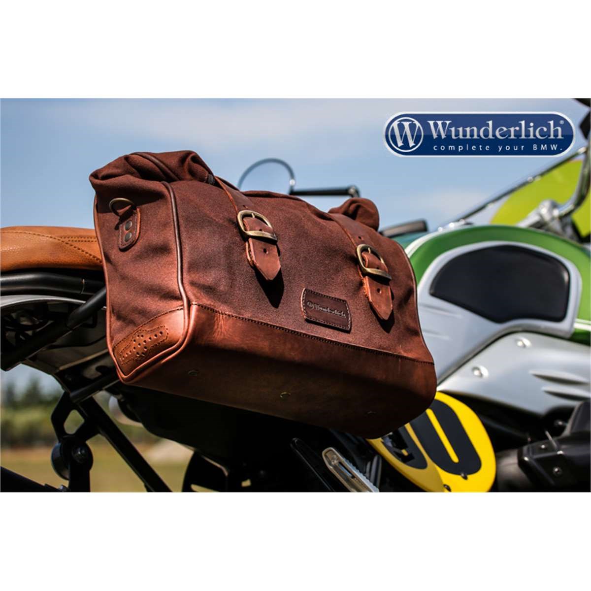 Diese stylischen, olivschwarzen Seitentaschen für rechts oder links aus gewachster Baumwolle sind nicht nur eine praktische Gepäcklösung, sie verleihen der R nineT auch einen ansprechenden, lässigen Look. Die Echtleder-Applikationen betonen die Wertigkeit, das widerstandsfähige Innenfutter macht die Taschen zum robusten Gebrauchsgegenstand. Ein Reißverschluss sowie zwei breite Lederriemen verschließen die Tasche zuverlässig und stilecht. Der Inhalt von 9,5 Litern je Tasche kann durch optional erhältliche wasserdichte Innentaschen vor jeder Witterung geschützt werden.