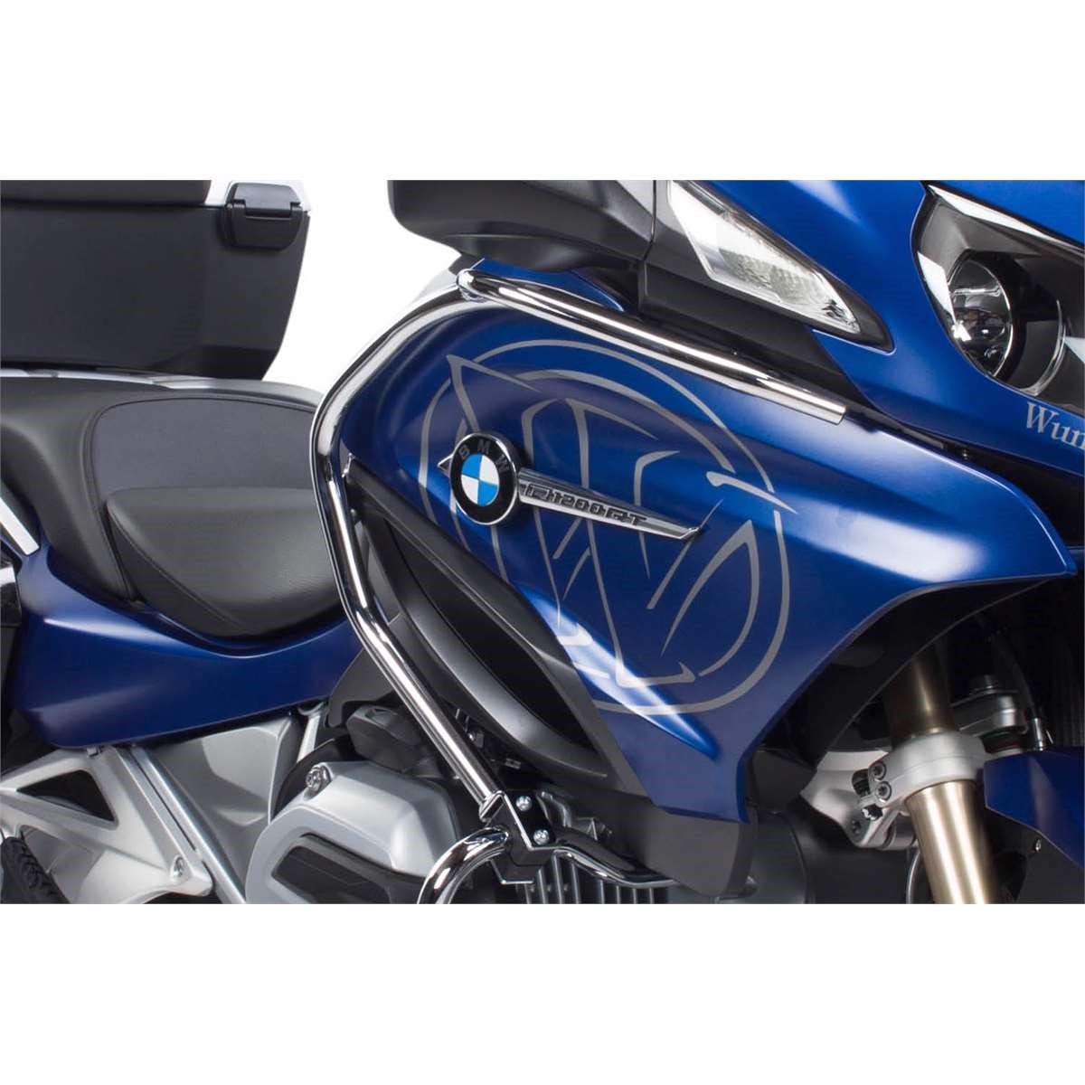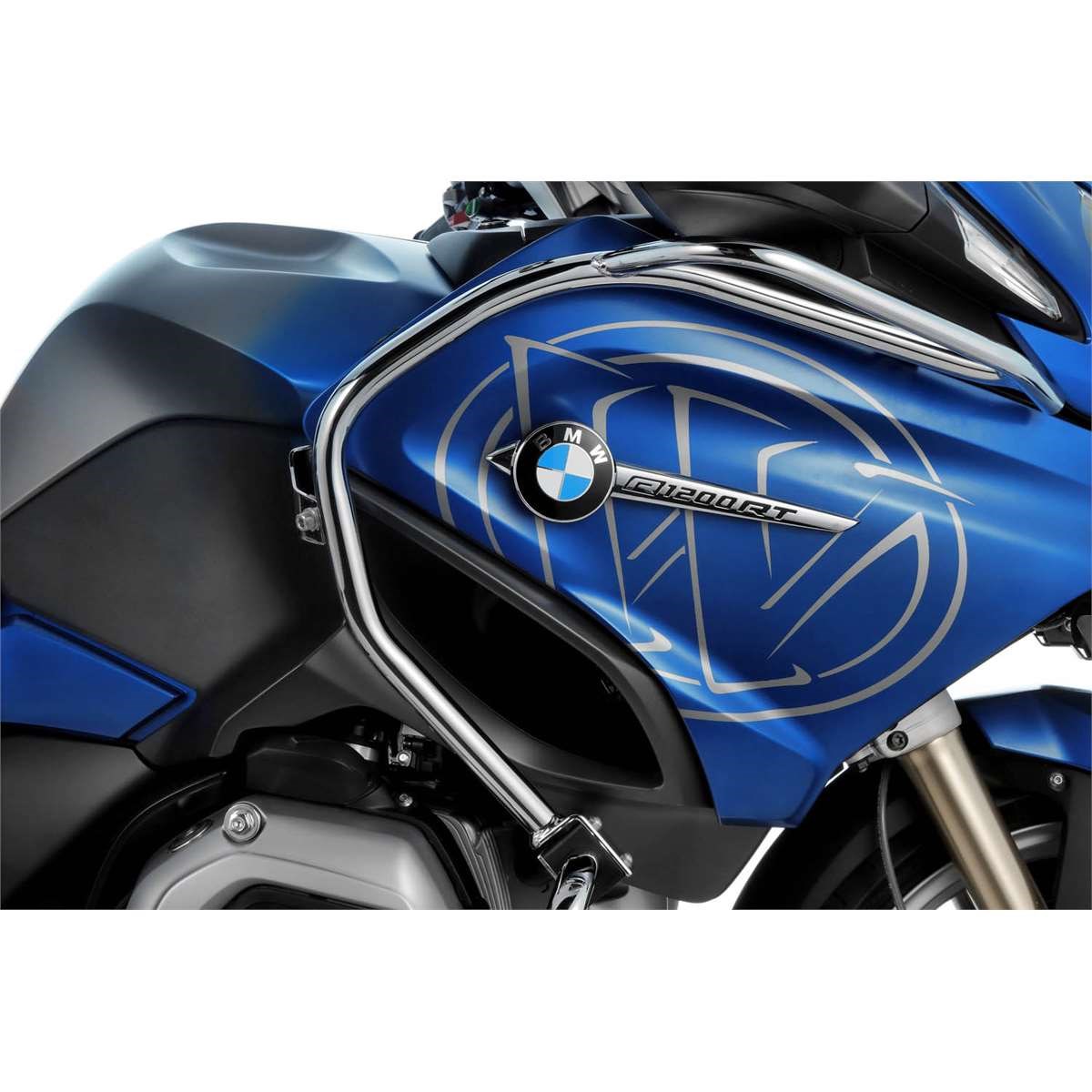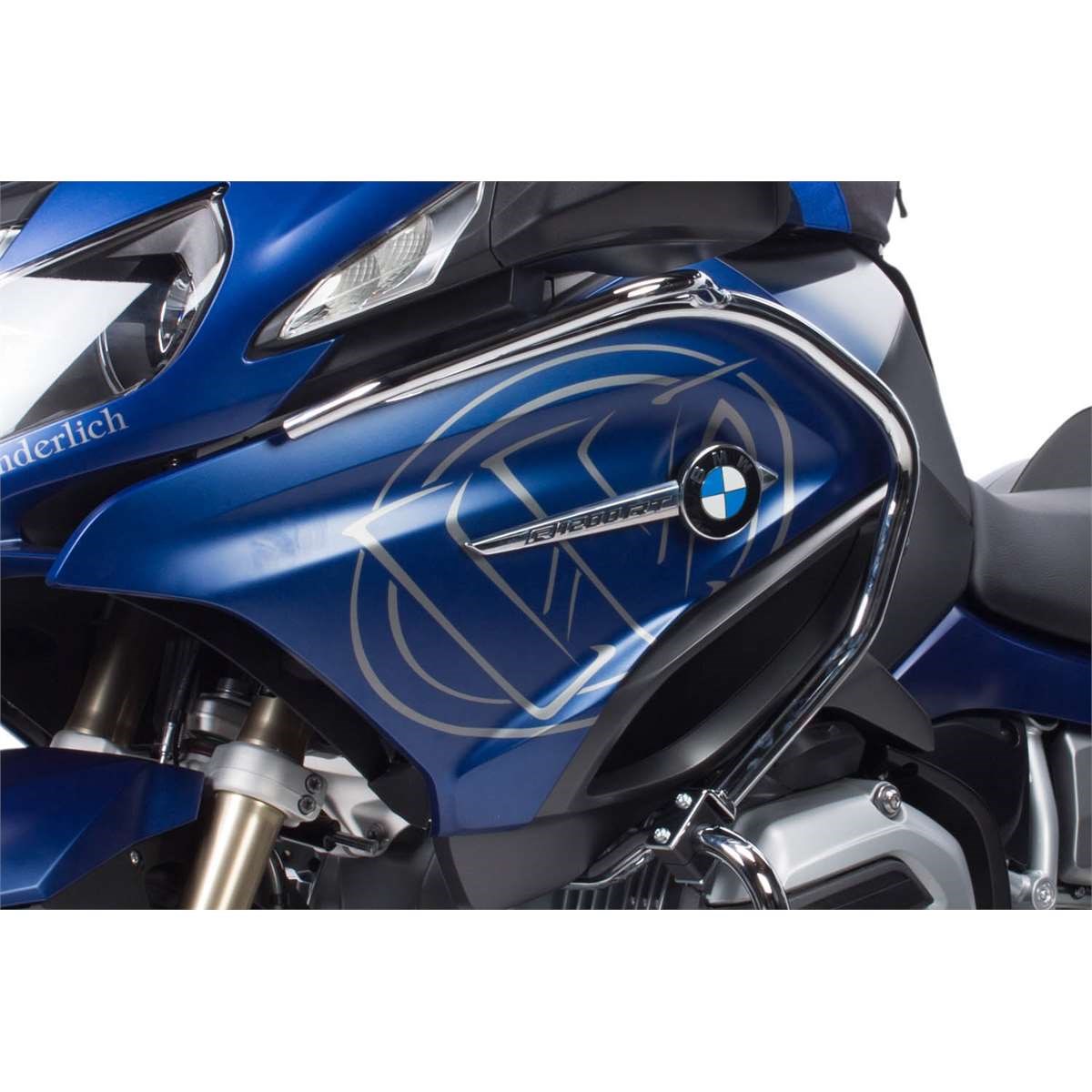 Ein Schutzsystem, das die Kunststoffteile bei Umfallern und auch Remplern im Stadtverkehr sicher schützt. Zudem betonen die Schutzbügel die elegante Linienführung der R1200 RT LC.